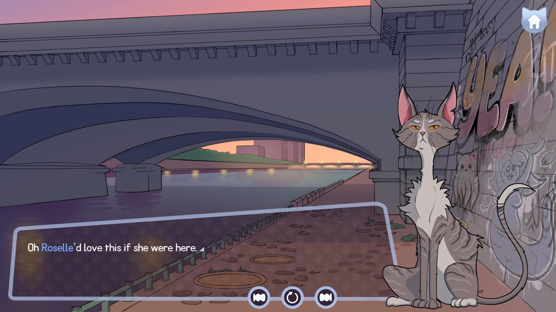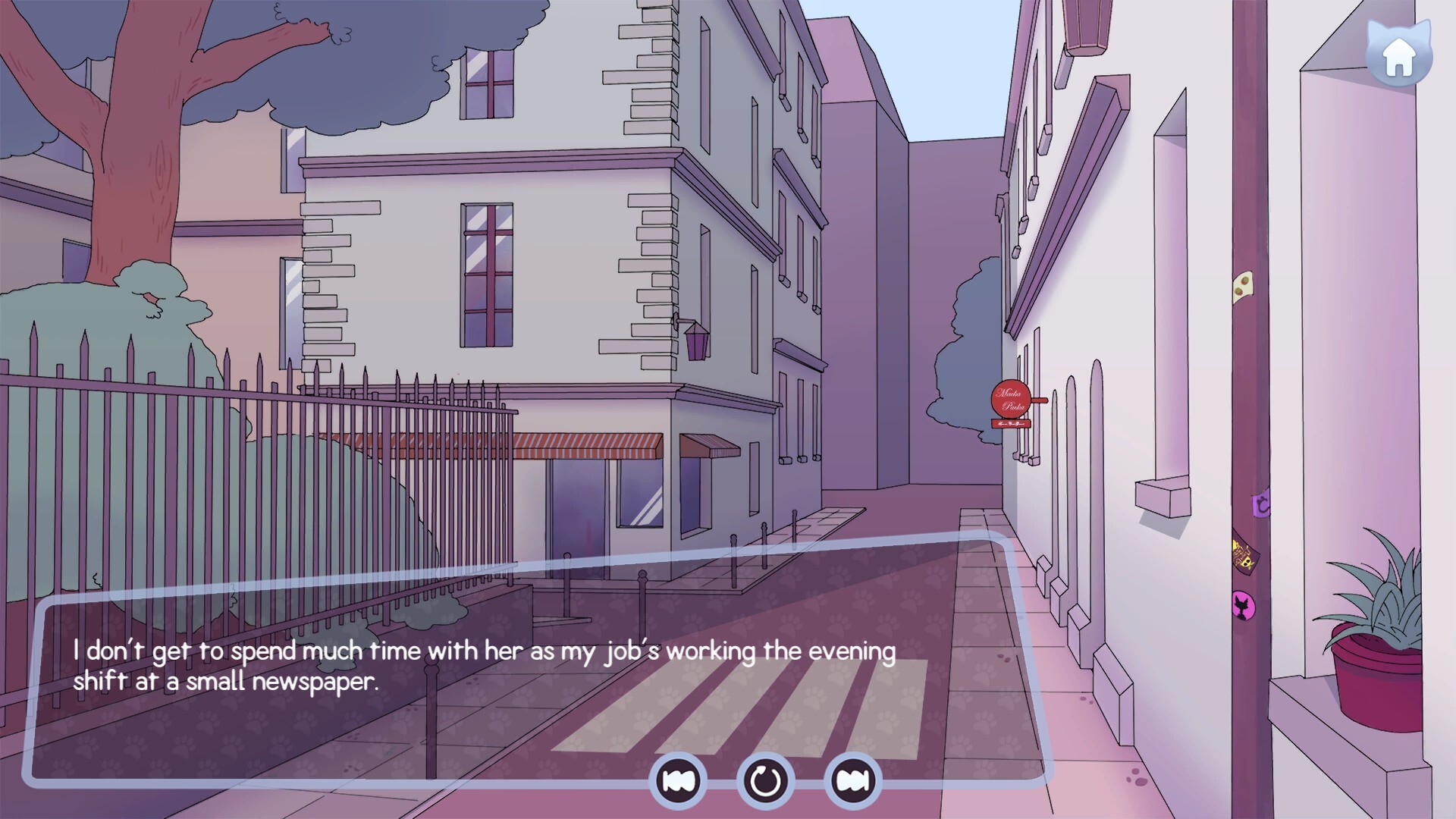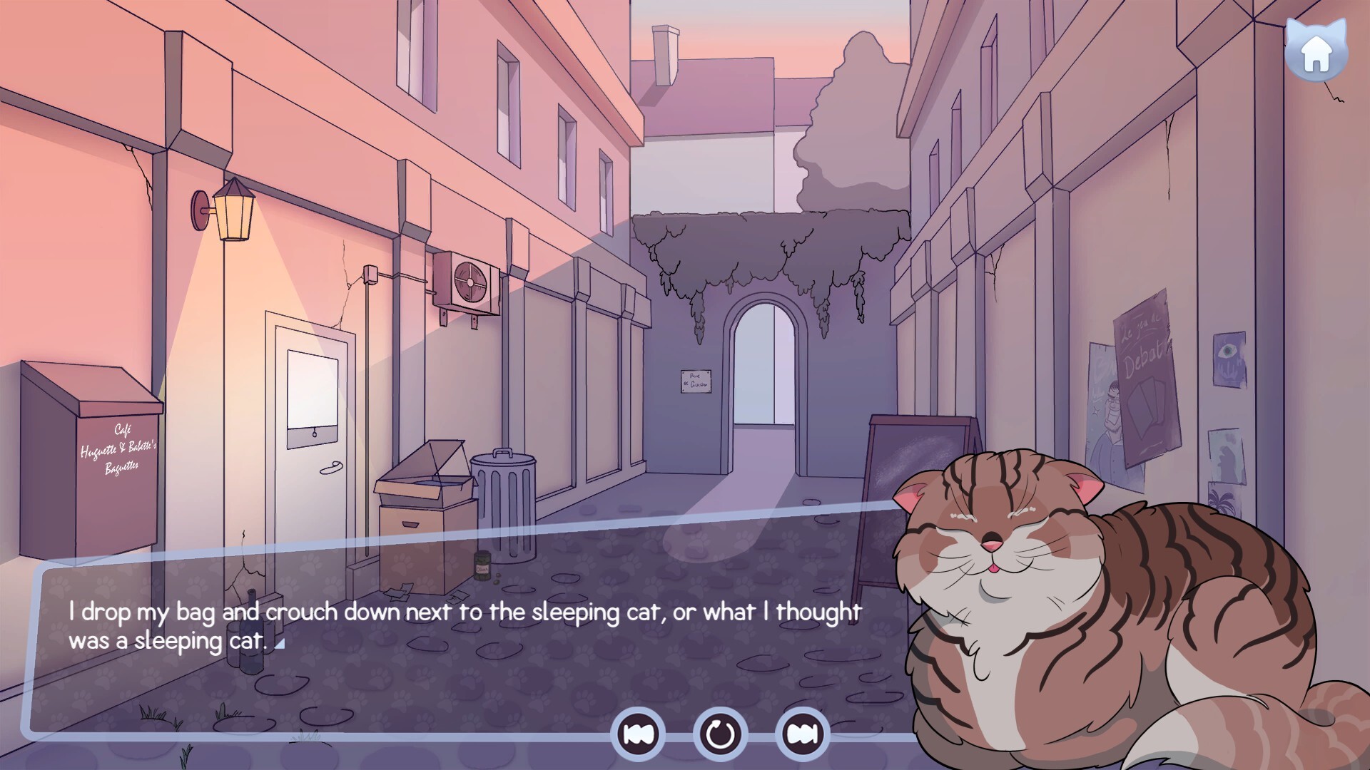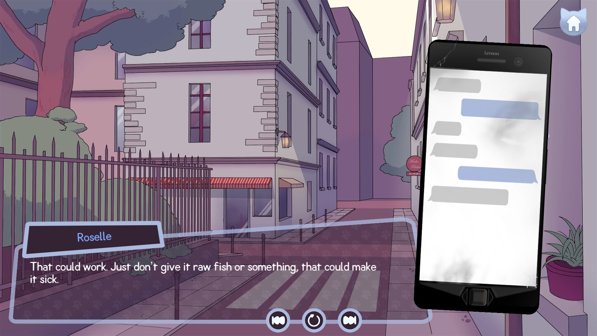 Set in Paris, Cateau is a visual novel that takes the idea of friendship and investigates it through a particular lens – what it might take to actually be a friend in more than concept alone. As the protagonist, you come to understand that your friend and roommate Roselle is unwell. You take it upon yourself to try and rekindle that spark of life that seems to have gone out by engaging in one of her former interests, cats. While sauntering up and down the cozy streets of the City of Lights, whether it be to get to work, run errands, or simply enjoy the town, you will come to encounter three distinctly different cats. Their personalities being fundamentally unlike one another, it's up to you to enter unfamiliar waters, figuring them out as you attempt to bring your friend back. The multiple, varied endings give each choice, big or small, tangible consequence.