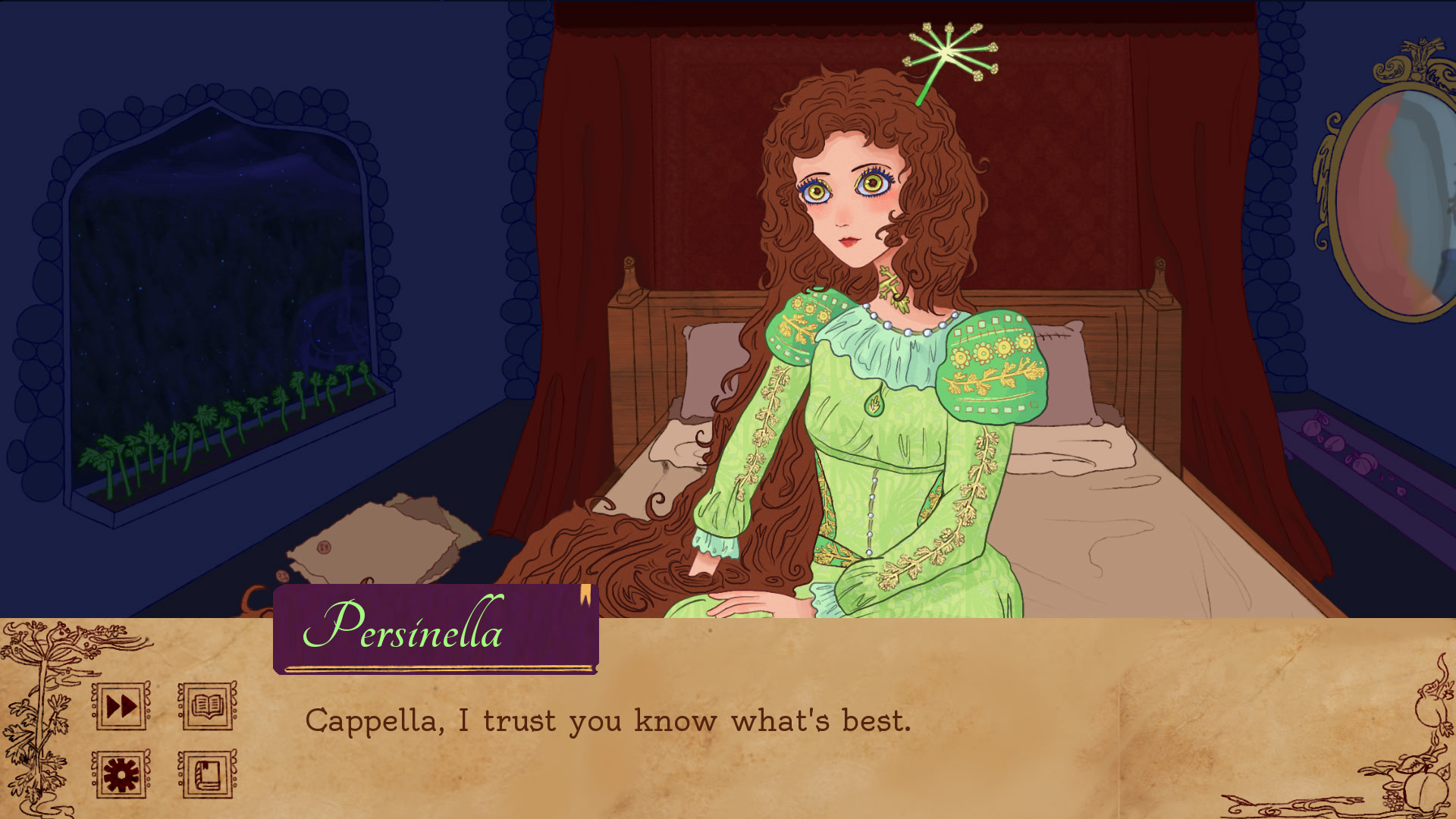 A reimagining of Rapunzel, except there are two princesses locked in the tower, each with a different idea of how to handle the so-called "prince" who lurks outside. Itch.io]