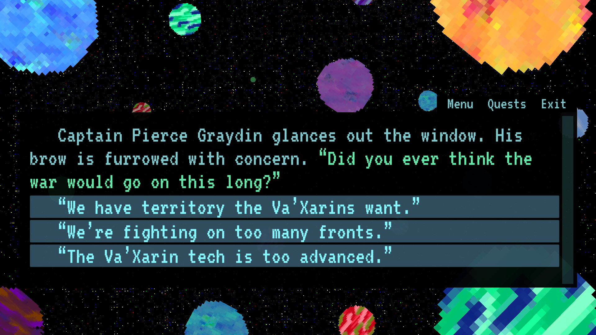 As Captain Graydin’s first officer, your primary objective is to secure peace. Your choices could end the war ...or prolong the bloodshed. The fate of humanity is in your hands.