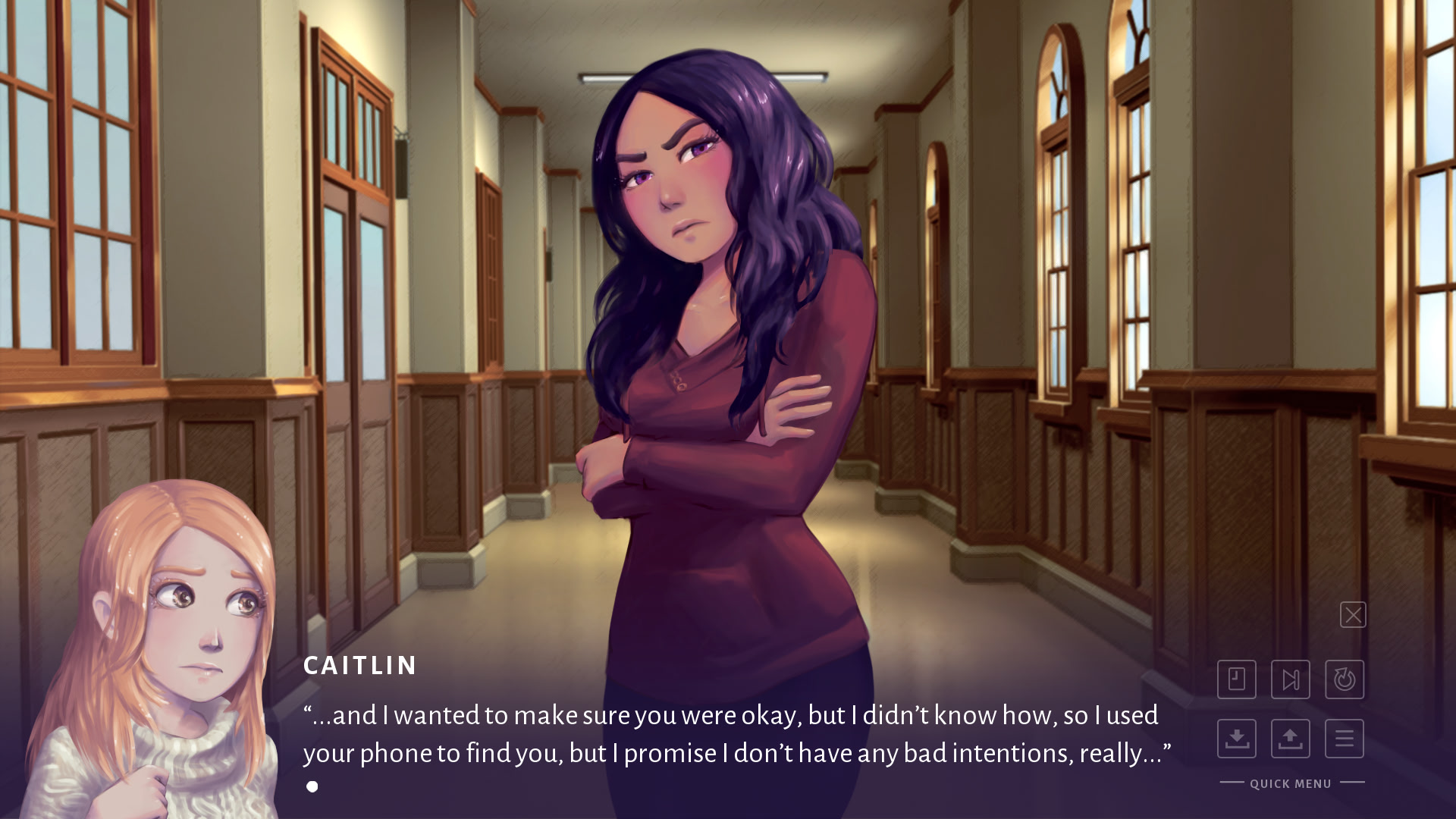 Much to her surprise, her damsel in distress is not at all grateful for being saved. Caitlin only catches a glimpse of shockingly violet eyes glaring back at her before the girl runs away in tears. The girl far out of sight, Caitlin bends down to retrieve the only evidence left of the encounter: a silver smartphone, fallen from the pocket of the vanished girl.