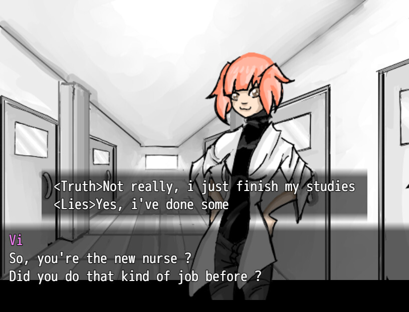 Your friends annalynn call in a middle of the night, you know something wrong with her The next day, she offer you her job, You accept and you discover that you will take care of mad person and maybe some... potential murderer. itch.io]