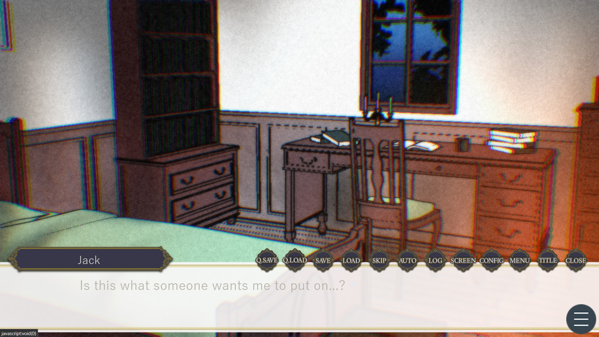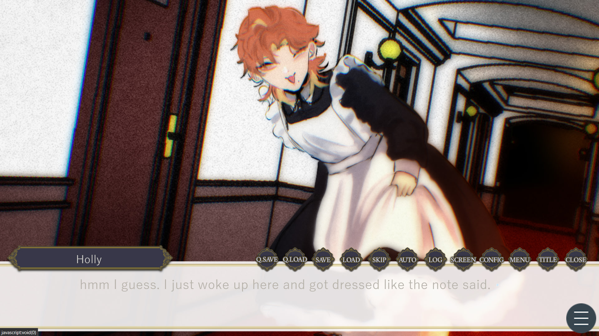 Jack wakes up in a mysterious mansion with no memory of how he got there. He is told to dress as a maid and clean alongside Holly. Itch.io]