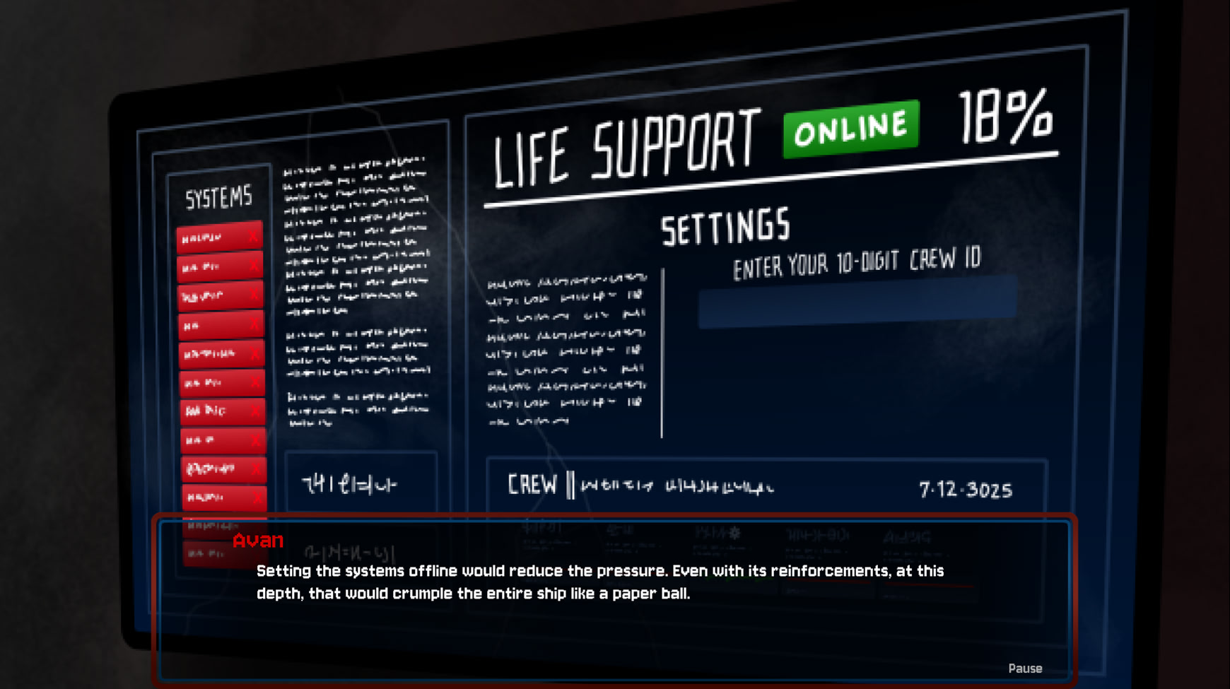 A thousand leagues beneath the ocean of a foreign planet, you find yourself trapped inside a ship with something humanity has never seen before. It was only meant to be a short trip. How could it have ended this way? You're the only one left. You know what you have to do. Only one question remain...