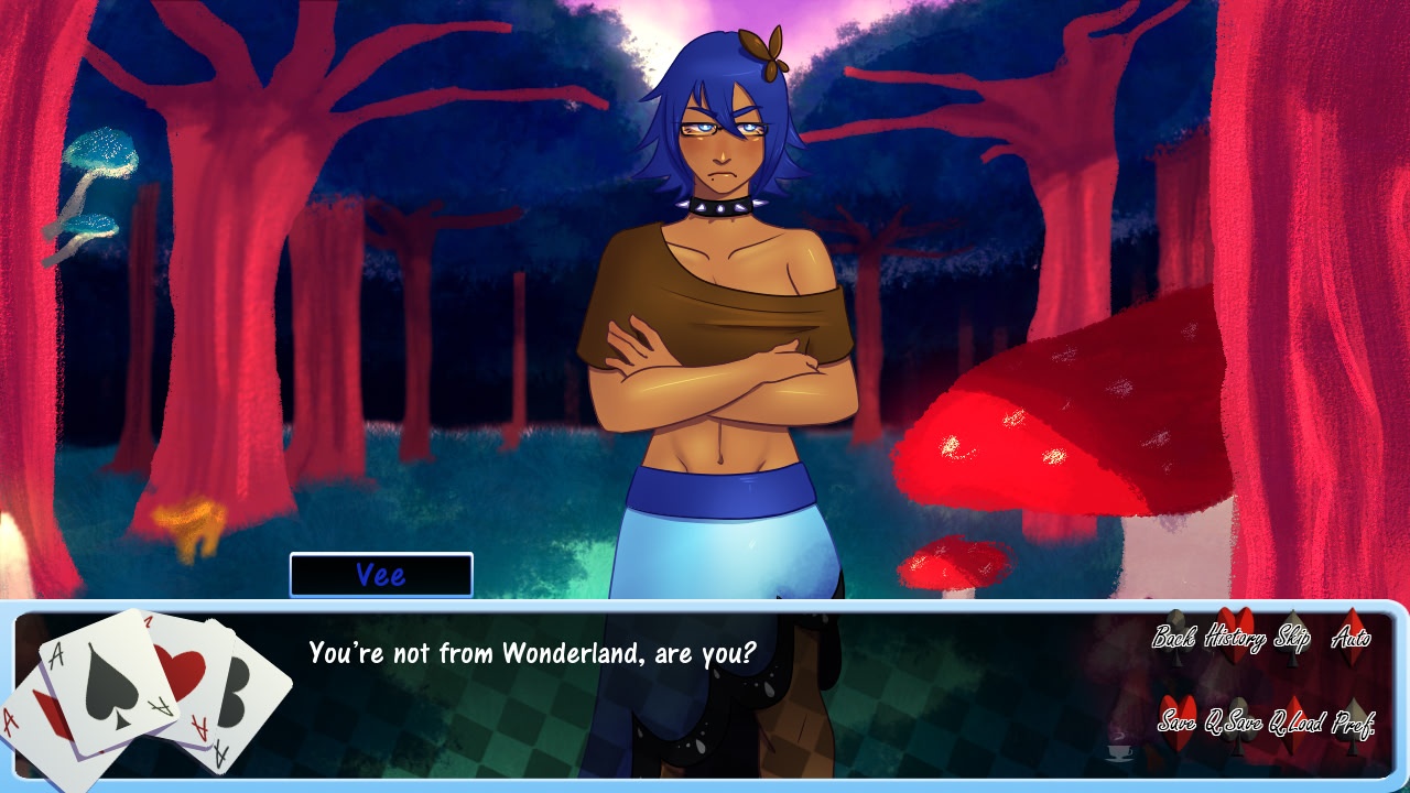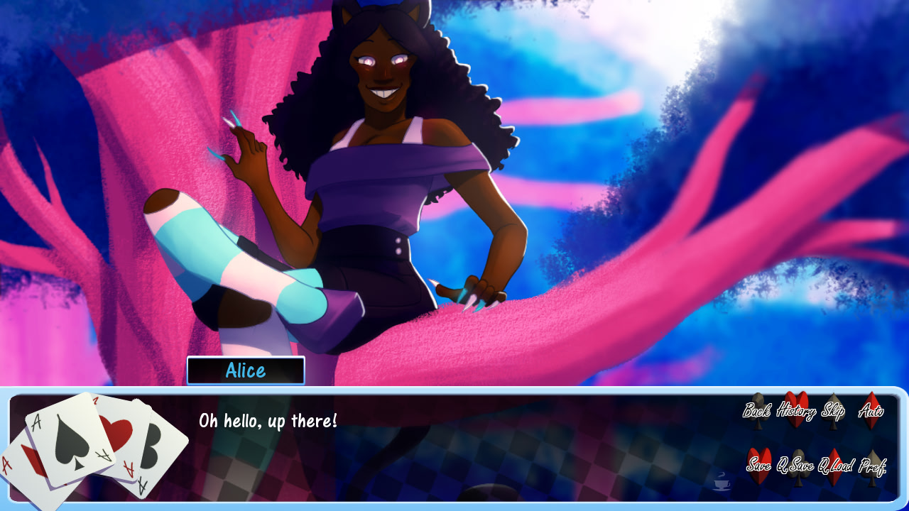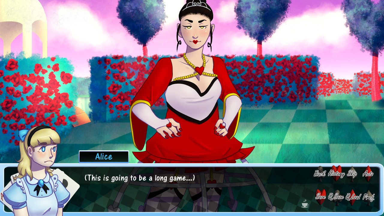 Alice’s Reverie is a visual novel following our protagonist, Alice. Alice grew tired of being compared to the protagonist of Alice's Adventures in Wonderland as a child. Now, as a twenty-year-old struggling student and a closeted lesbian, she envies the fictional Alice's carefree childhood days. But when Alice suddenly finds herself in her own bizarre version of Wonderland, will it be the magical adventure and fairy tale romance she's always dreamed of?