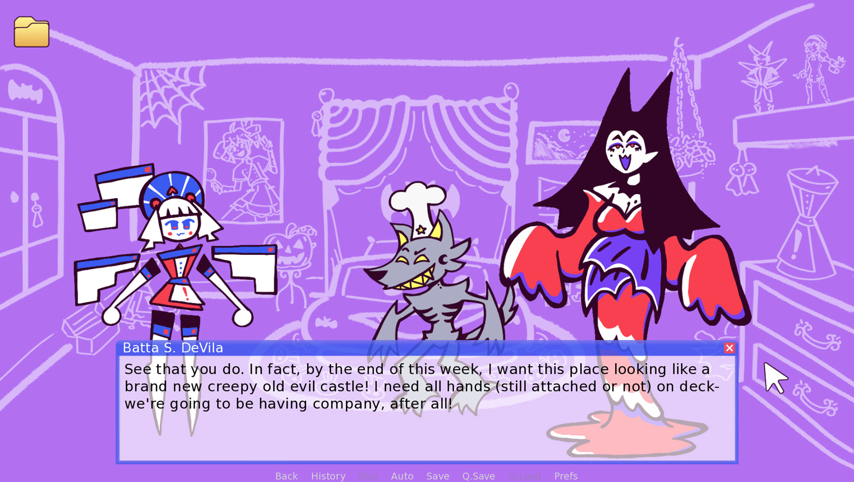 DAISY-BOT serves Countess Batta S. DeVila, possibly the most awful villainess in the Kingdom – if only she'd focus on something other than chasing those dumb Heroes who just won't quit. She's rude, reckless, and full of red flags. Still, maybe she likes you? Hard to tell...