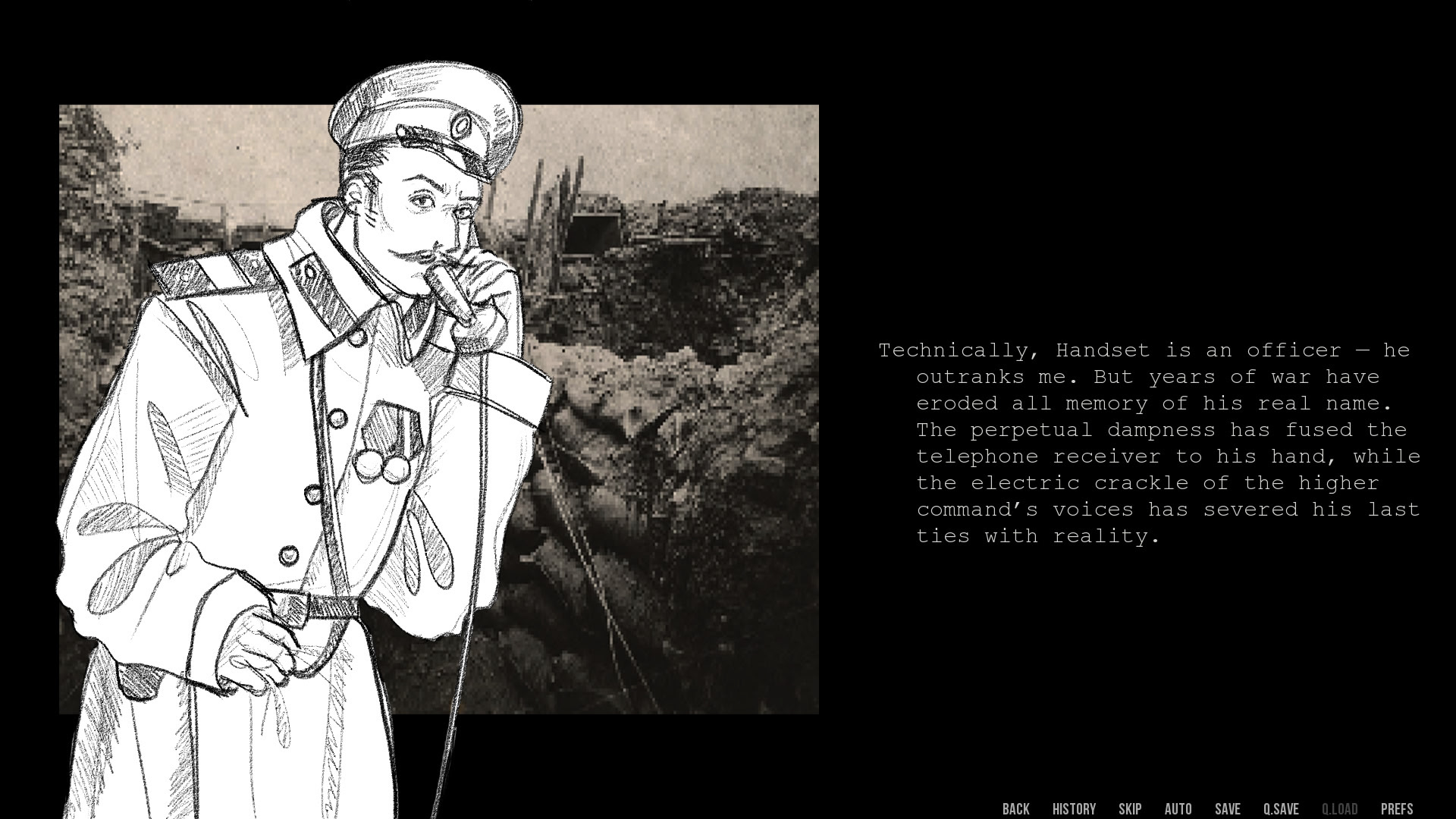 Two soldiers are stuck together in a trench. And none of them are sane, that's for sure. They pursue different goals — but what would be left of their hopes when the field phone rings... for the first time in two years? itch.io]