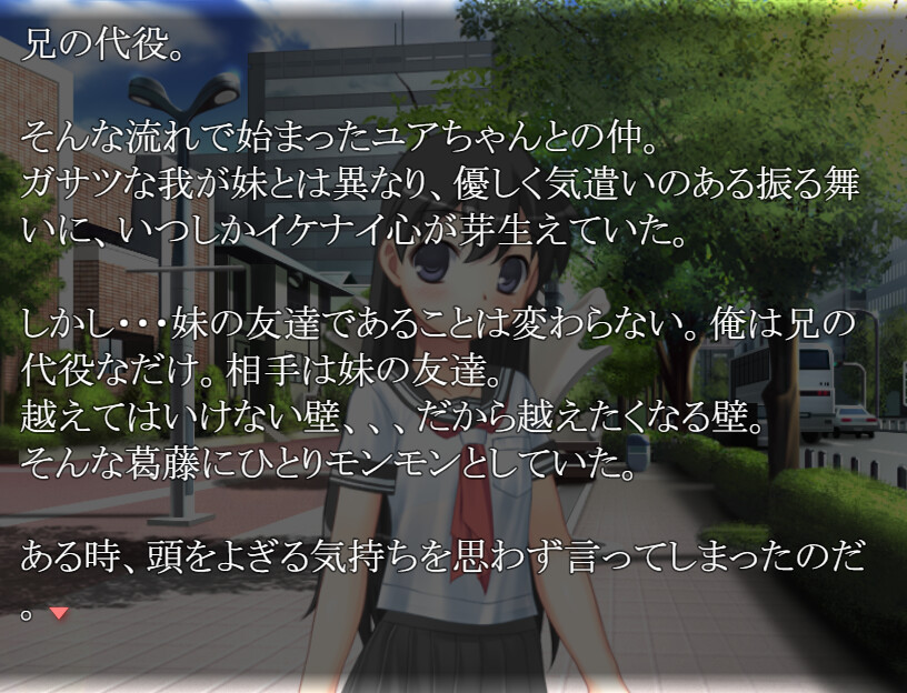 This is an after story of the protagonist and Yua, one of friends of his little sister. As opposed to the little sister, Yua is even-tempered and well-mannered girl. When he has got to take a role of Yua's big brother for some reason, they start getting close. DLsite English]
