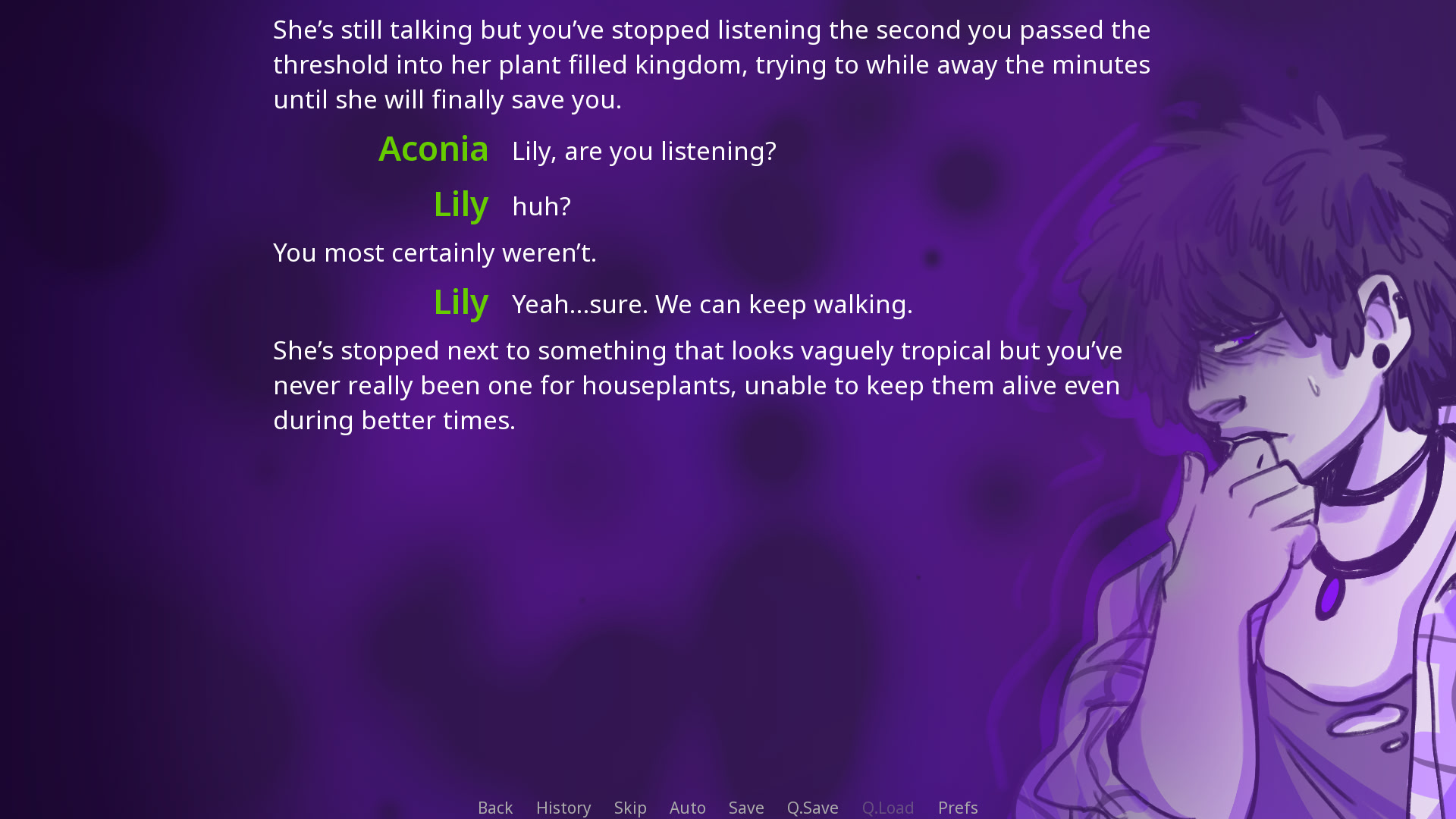 Lily is convinced that she's died and the only person who can fix her is a strange woman with an affinity for plants. Only to repair something dissassembly is usually required. Itch.io]