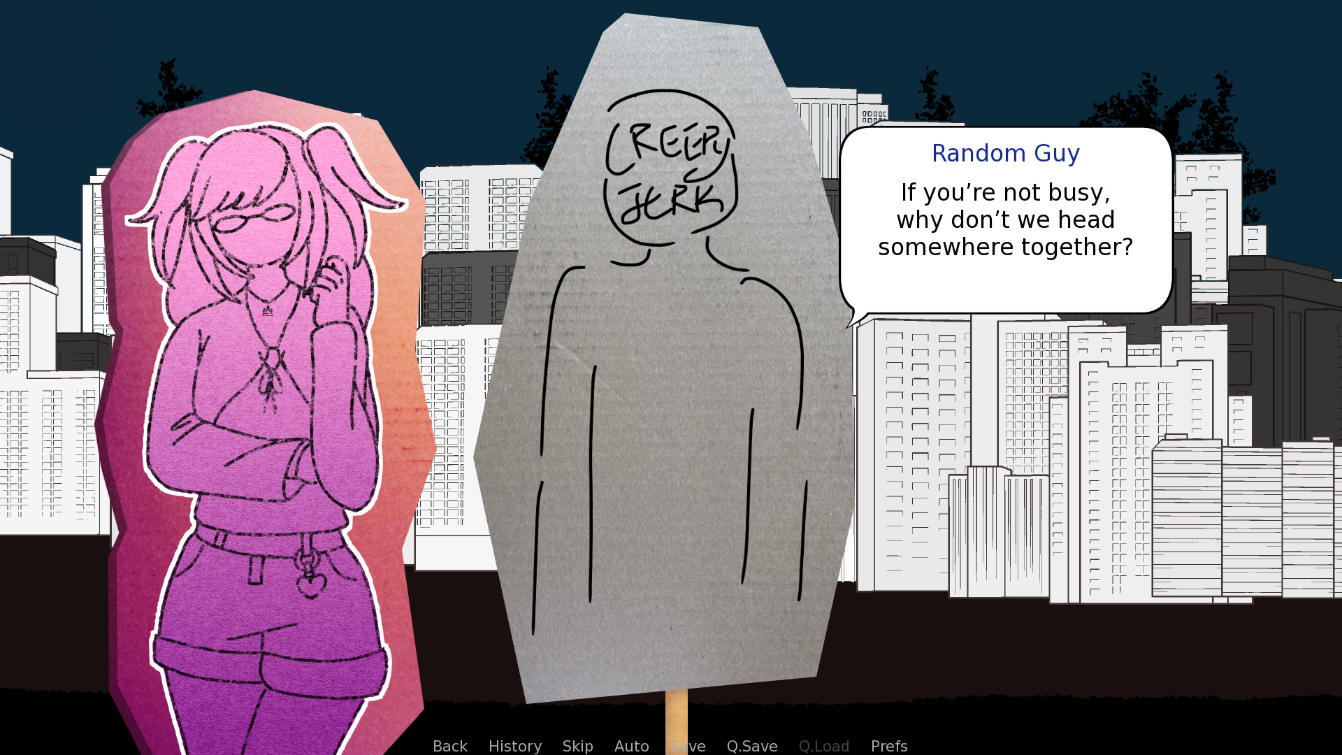 The news breaks to a town that's completely unready to hear it. A terrible, tragic murder while the town slept, targeting poor, innocent students from the local high school... Everyone assumed that it was a clear-cut case of a monster targeting some unfortunate victims... ...what a joke. Itch.io]