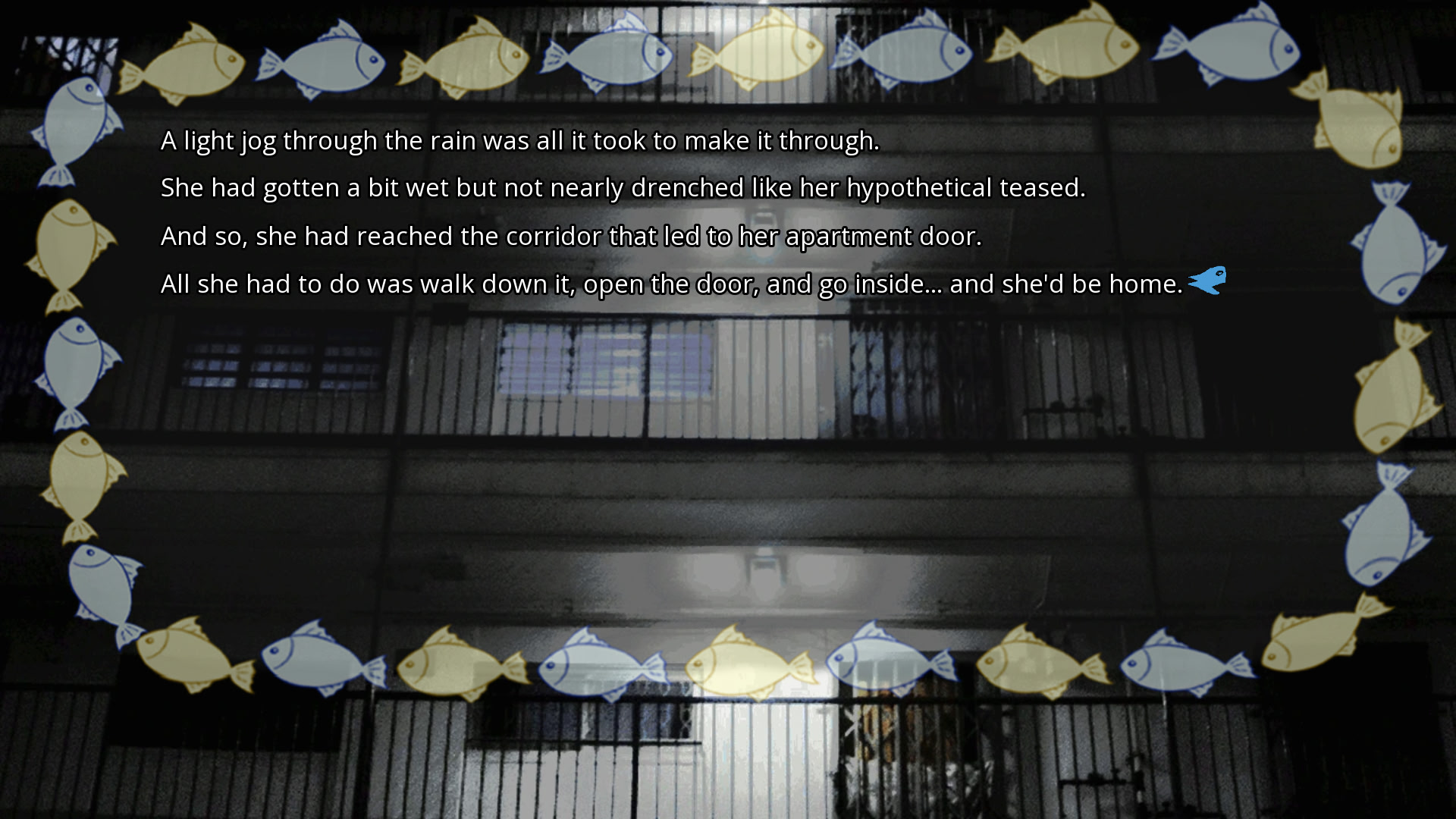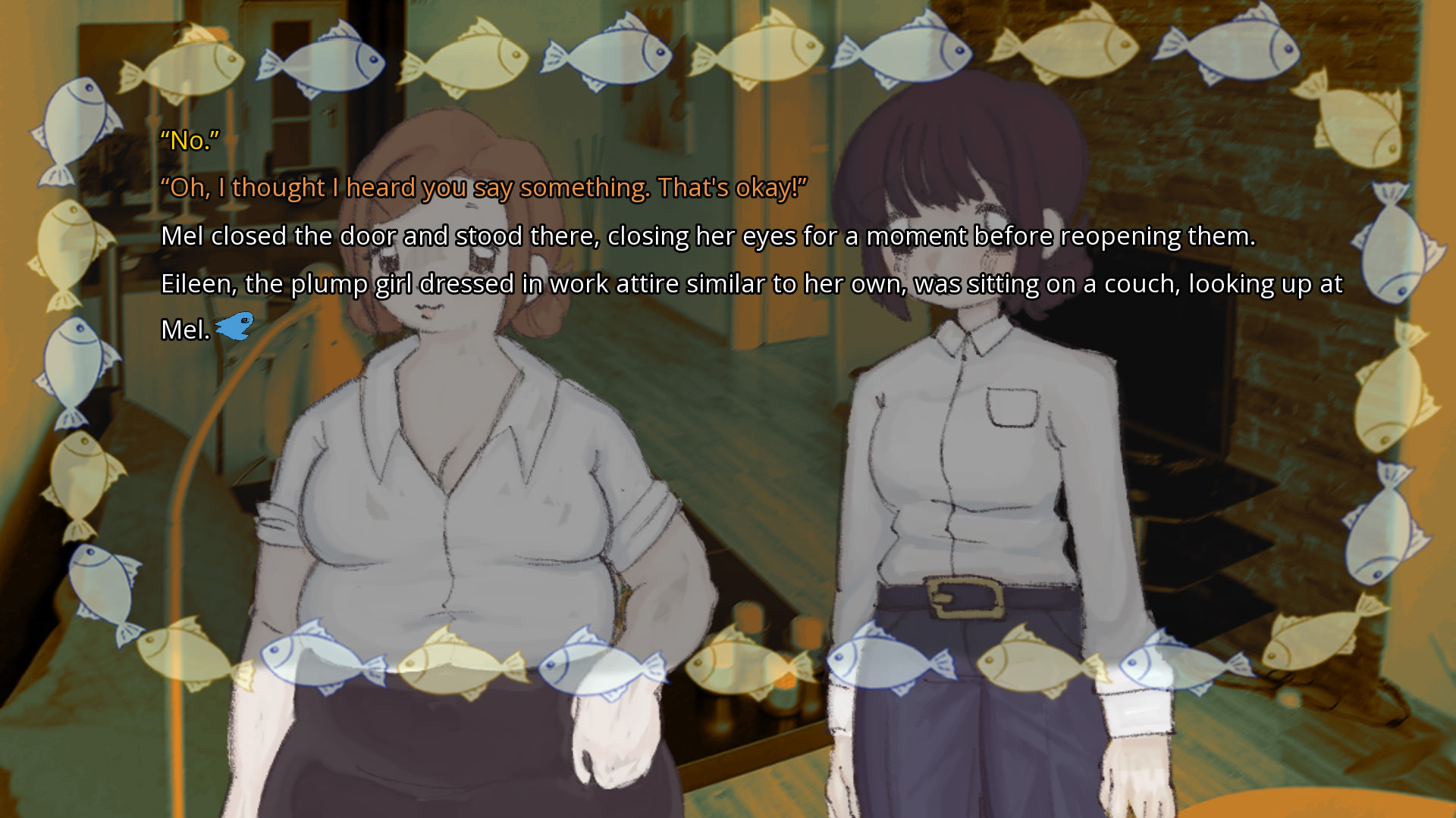 Mel trails behind her coworker's car. They agreed to head over to her place to 'hang out'. This, though, does not explain the secrecy in which they act.