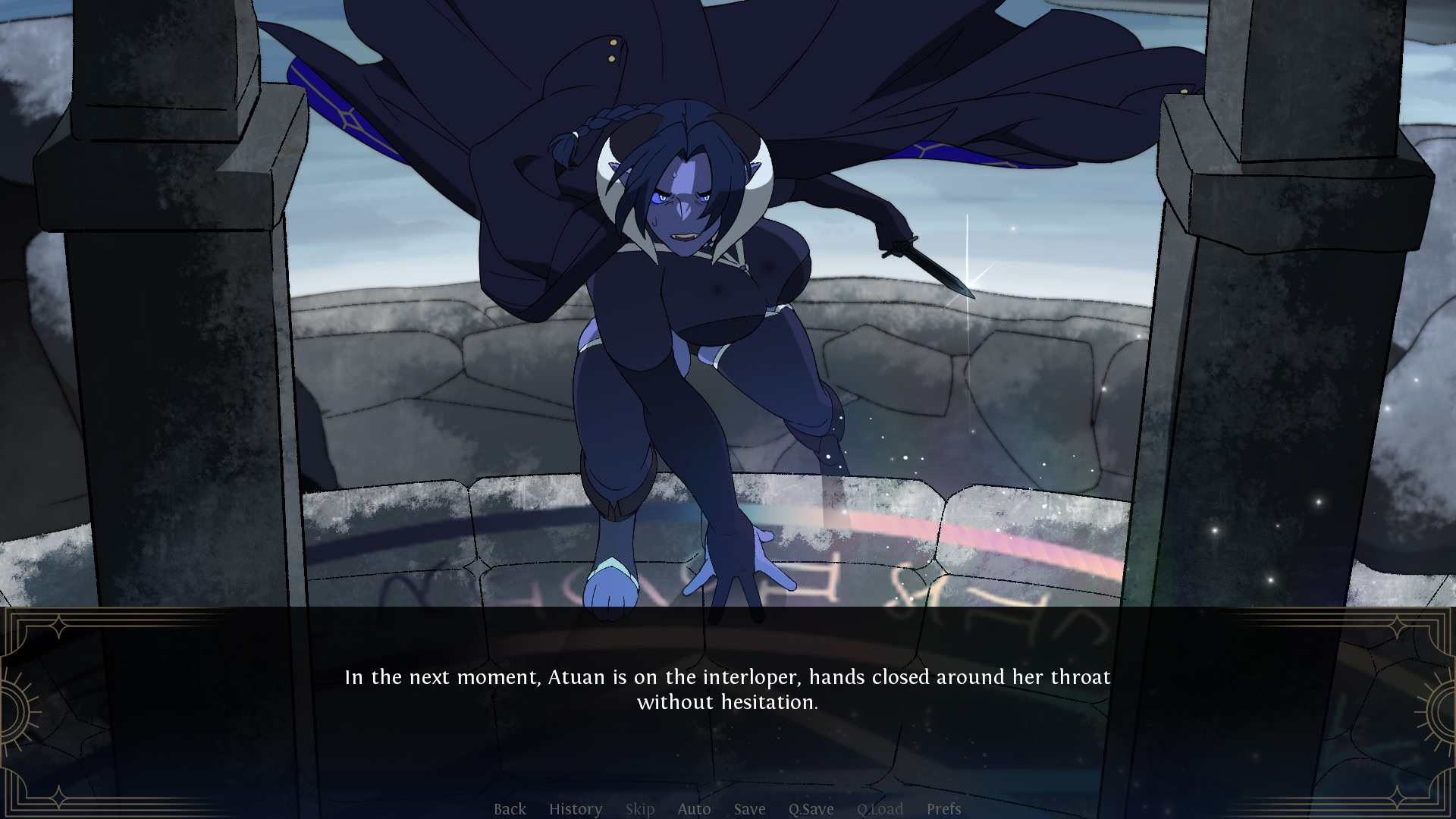 Deep in the mountains, three women suffer a chance meeting, and a ritual goes awry. Bound together by the results of their interrupted magic, they must work together and free themselves, or fall victim to a curse of their own making. itch.io]
