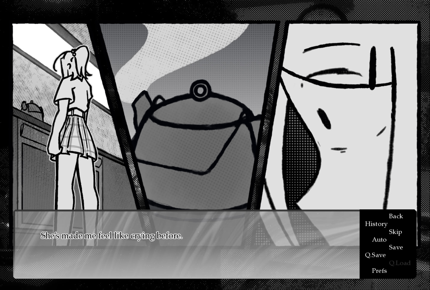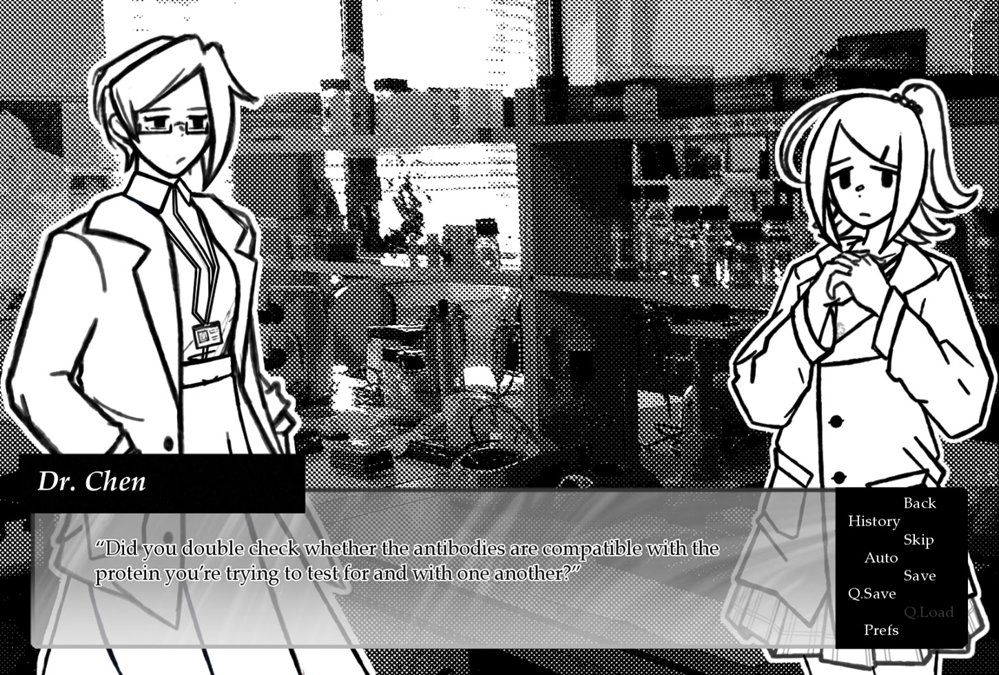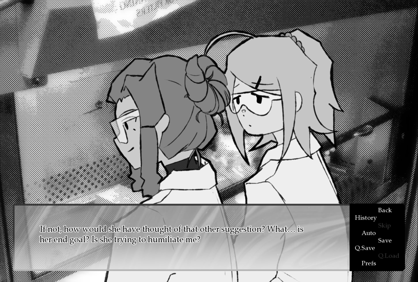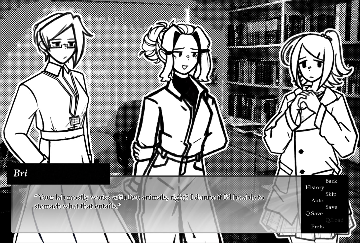 A short drama/suspense kinetic novel about mediocrity, jealousy, obsession, salvation, postgraduate animal research, and how they affect the relationships surrounding a girl named April. Let it be known that lab conditions must remain sterile. itch.io]