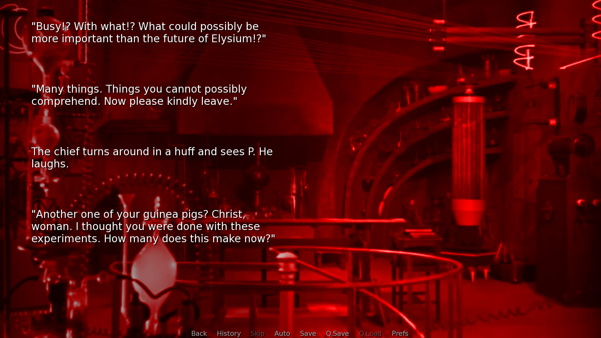 The futuristic utopian city of Elysium stands as a technological marvel. Built by a genius roboticist known only as "Doctor H" and her lesser known partner, "Doctor P", these two scientists find themselves reconnecting after years apart. However, they find themselves haunted by both their pasts and their ambitions for the future.