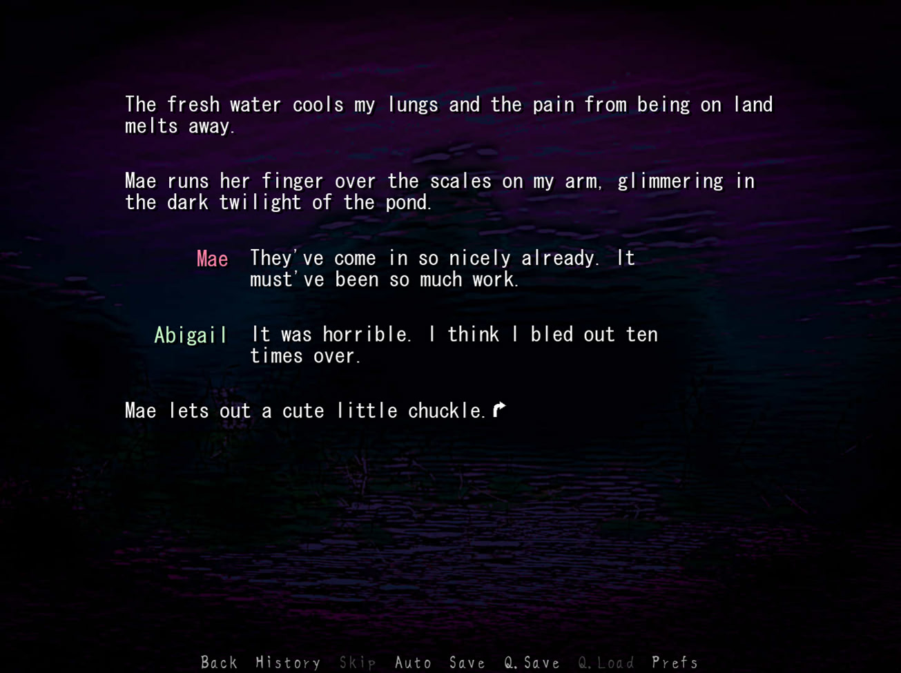 A girl lives in a secluded village deep in a lush forest. An encounter with a mermaid will change her forever. A game about love and how it changes you, blood, pus, and all. itch.io]
