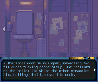 Hardcoded is an open-world dating-sim, set in the lawless reaches of a cyberpunk dystopia, in which you take on the role of a thinking/learning droid who has recently escaped her owners and is on the run. Before you can fully settle into your new life, it becomes obvious that Pira City is a place of dark and dangerous secrets. Fortunately, you're able to befriend a cast of very horny characters who seek your aid in pursuing a shadowrun-style investigation. You can spend your down time trying to establish yourself, by earning money, decorating your apartment, buying clothes, collecting sci-fi dildos, or working on turning friendships into romances.