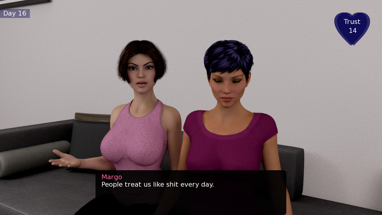 You are a twenty-something construction worker moving out of his parent's house. After seeing an advertisement for someone wanting a roommate you decide to check it out. The would be roommate reveals to you that she is a lesbian, but what else is there to learn about her? What was that sound you heard coming from her bedroom? You'll find out when you move in.