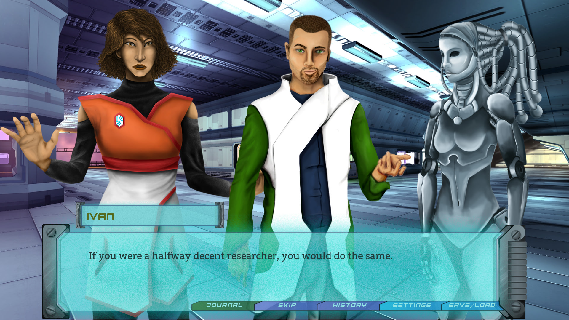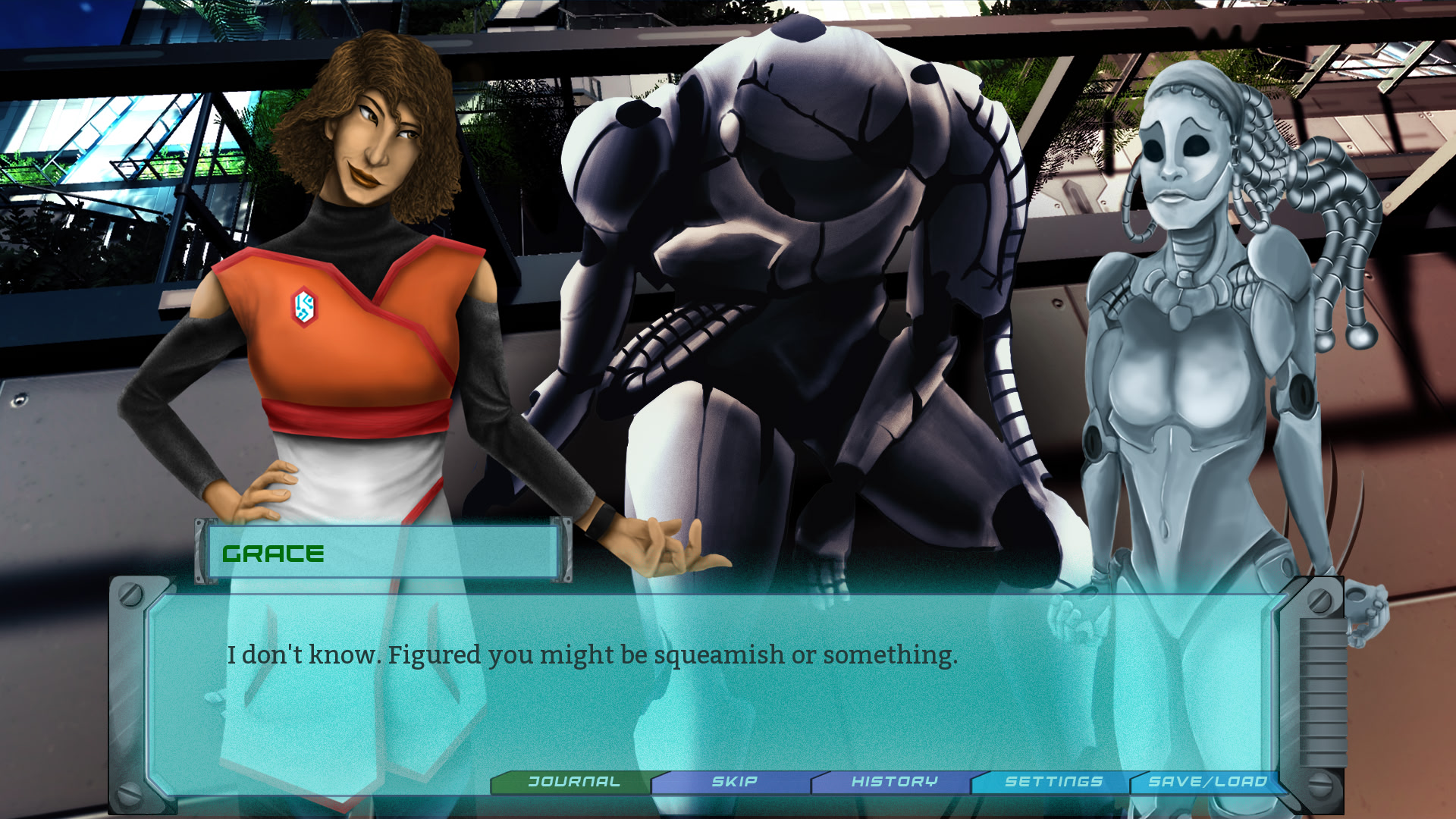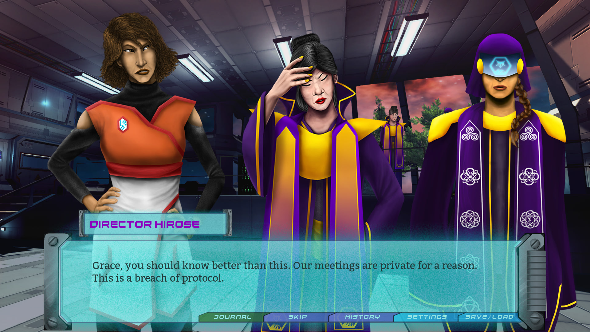 Error: Human Not Found places the player in the role of Grace Fortran, a computer scientist stationed on-board the Noah Sphere, a research station in space. Instead of celebrating the success of the first Artificial Intelligence (AI) being uploaded to a physical android, Grace is racing to clear her name in the death of the AI who was found dead less than 24 hours after the upload. Work together with another AI, Ada, to search for clues, question suspects, and solve four kinds of computer-science related puzzles in this science-fiction visual-novel/puzzle game hybrid. Determine the fate of AI's and their relationship with humanity with three endings to this murder mystery. Unlock databases that give background information about the real-life computer scientists, mathematicians, and roboticist that the characters share names with.