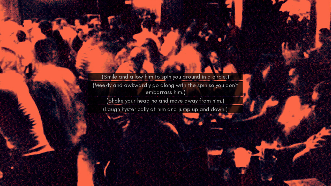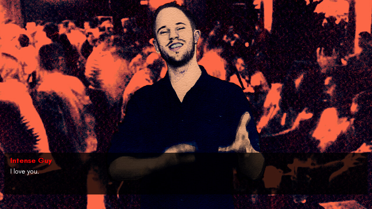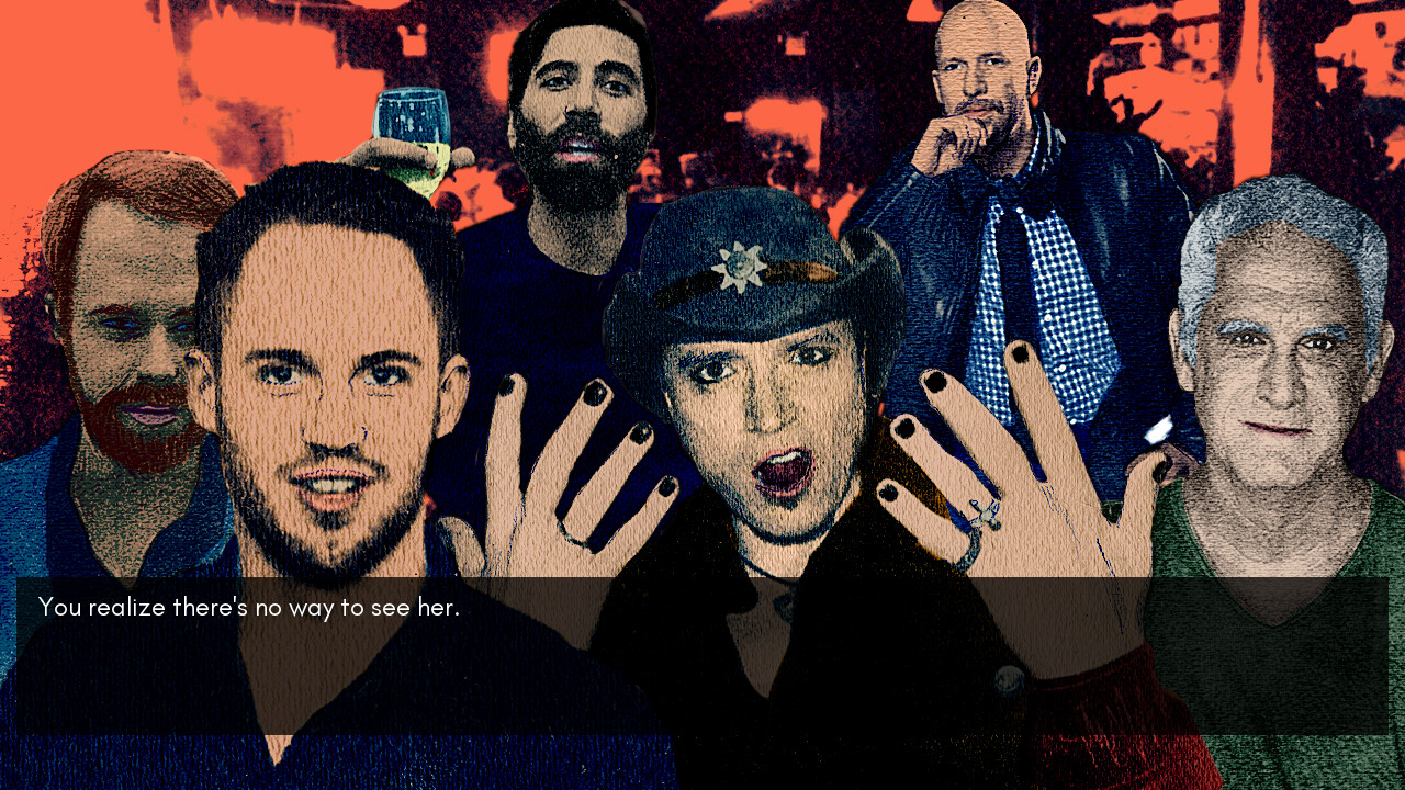 The Game: The Game is a feminist video game exploring consent and the practices of the male seduction community. In this unconventional dating simulator, infamous pick-up artists attempt to seduce the player using techniques taken from their instructional materials. Pitting players up against six prominent seduction coaches who are vying for your attention at a bar, the game provides the opportunity for players to explore the complexity of seduction social dynamics as well as the experience of being a femme-presenting individual navigating this complicated and often dangerous terrain.