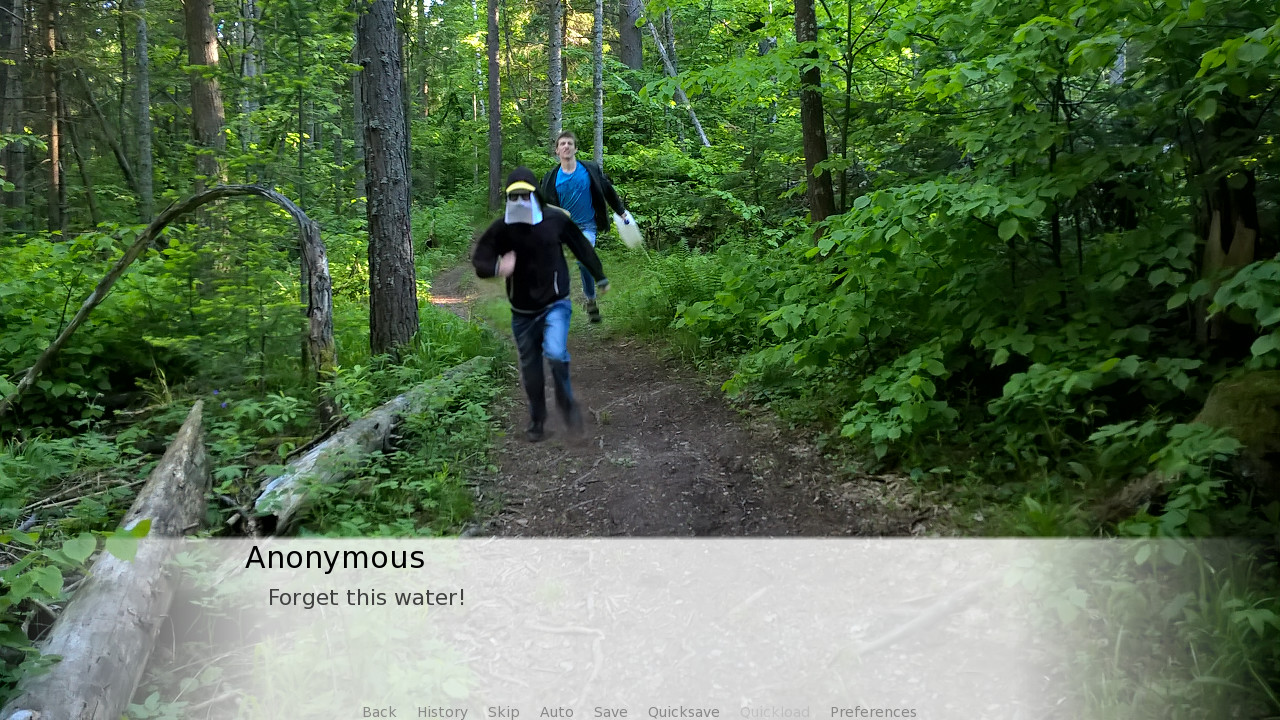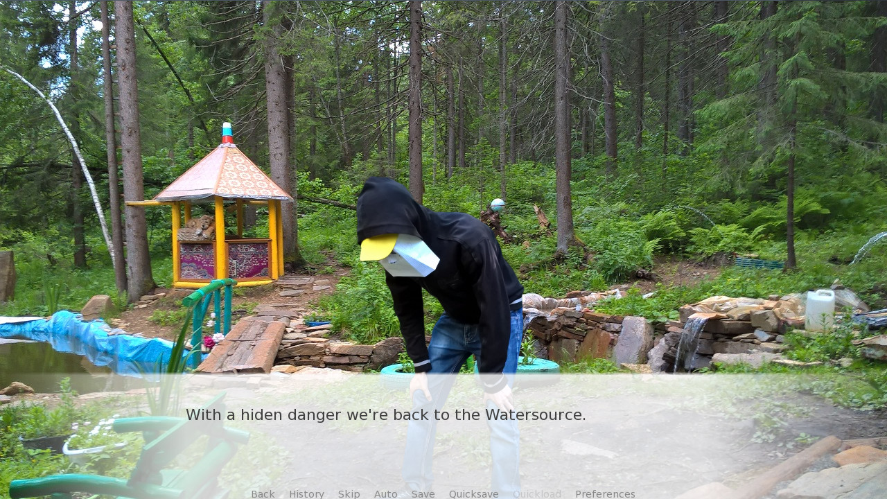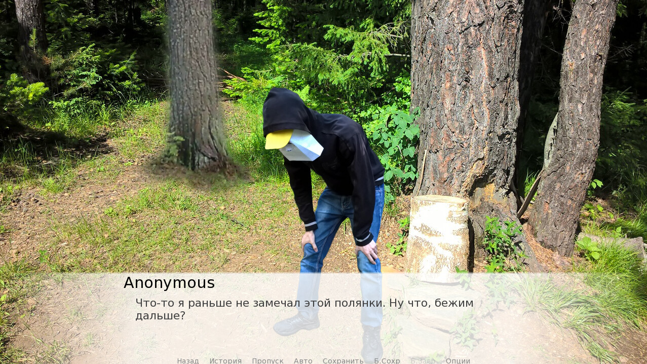 One videoblogger with anonymous operator try to escape from mysterious creature, which has released very creepy sounds on Wotersource. This novel is a mix of pretty dramatic plot, that will make you think about our lifes and destinies, and various popular Russian memes with local developer's jokes.