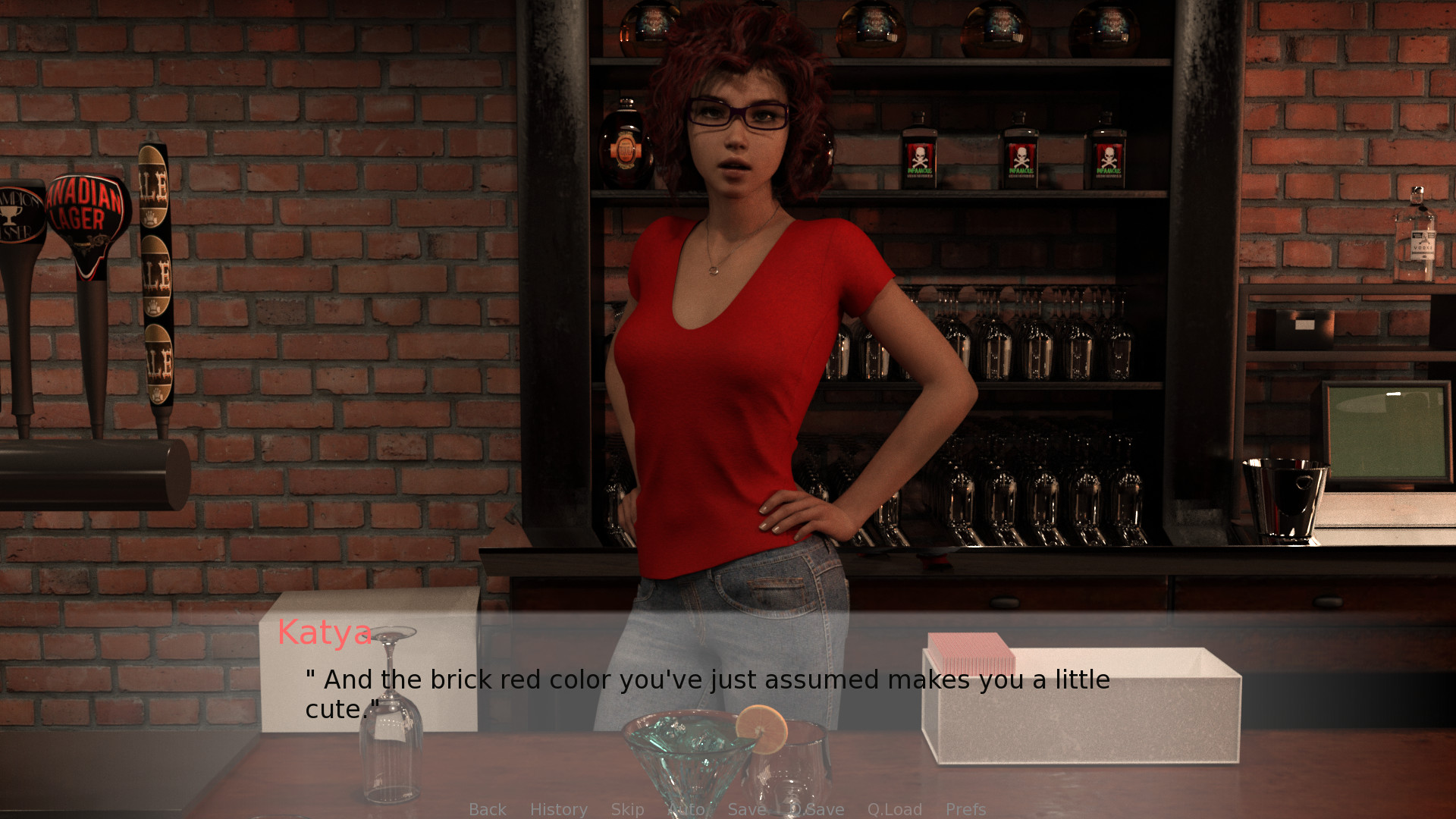 Katya is the barmaid at the bar you go to after work. You never got up the nerve to talk to her. Till Tonight.