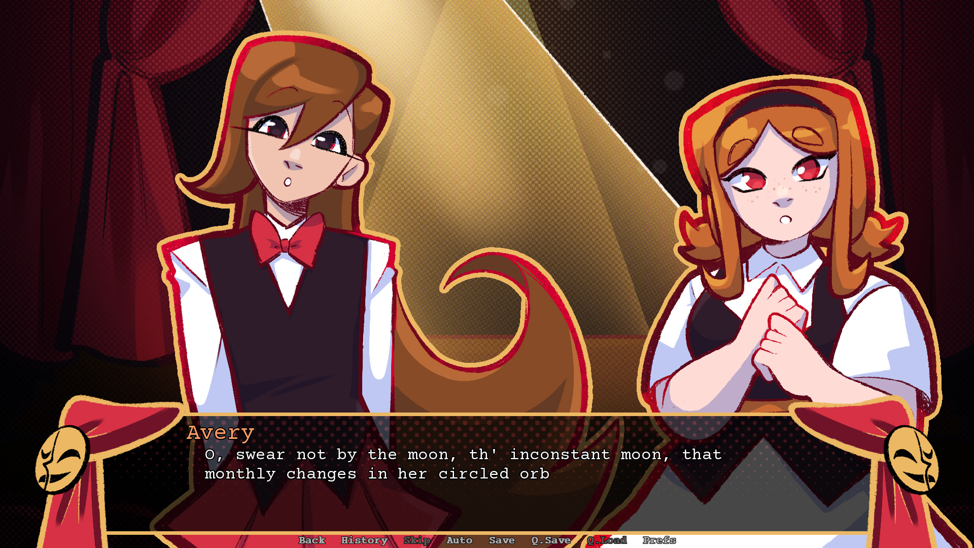 Where does the line of a person and their character blur? Could you love someone backstage the same as you do on the stage? Jinx, the loveless Romeo, basks in all the attention she can get, especially that of the reliant Juliet, Avery. But, perhaps this love turned obsession makes the spotlight bur...
