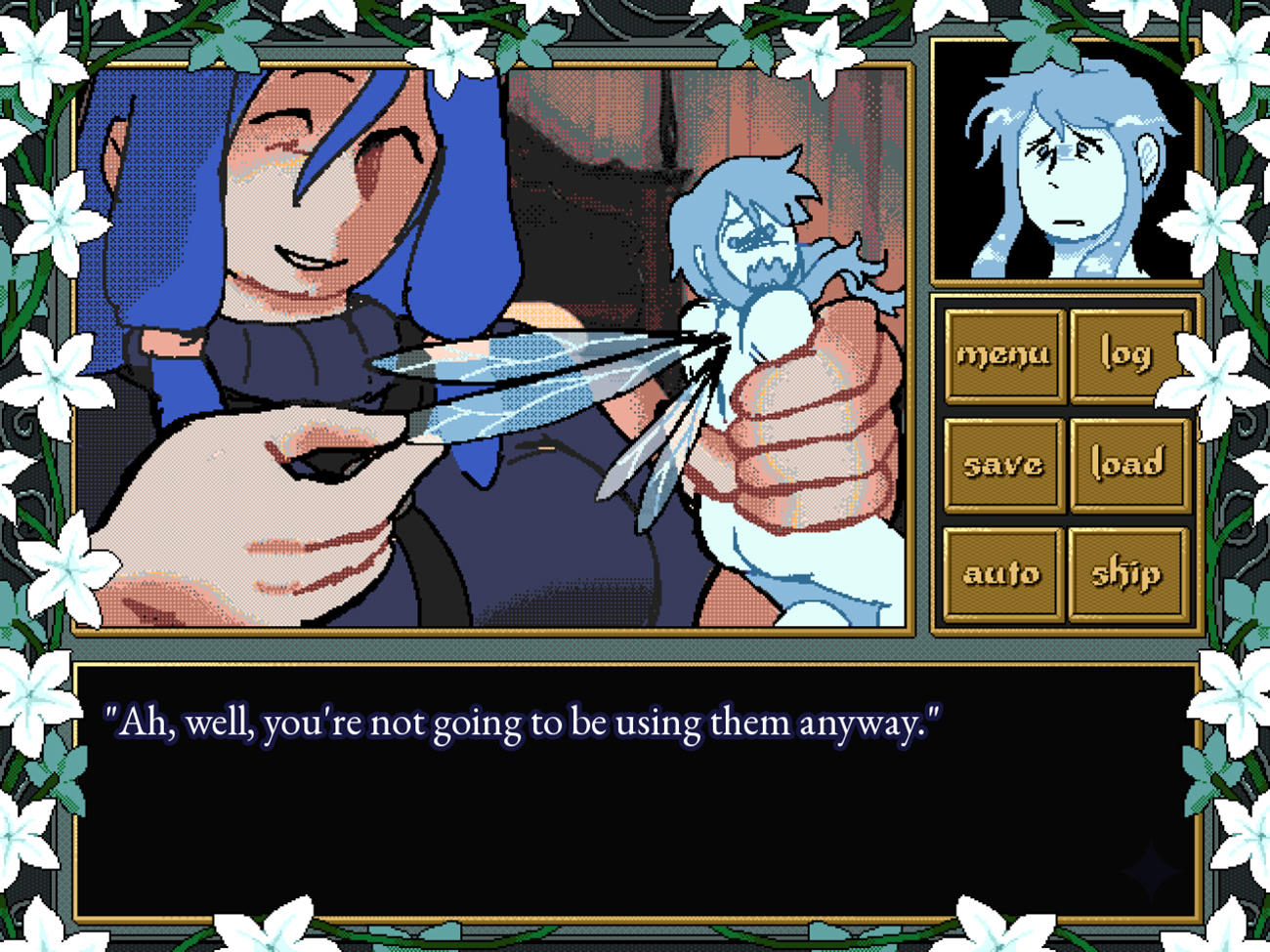 When a certain fairy gets kidnapped by a lone swordswoman, she assumes that, like most fairies, she will be cooked and eaten soon. Things take a dark turn when she realizes the adventurer's motivations aren't quite what she expected. Could their relationship ever become anything more than a strained mess between captor and prisoner? How much pain can you perpetuate in the name of companionship?
