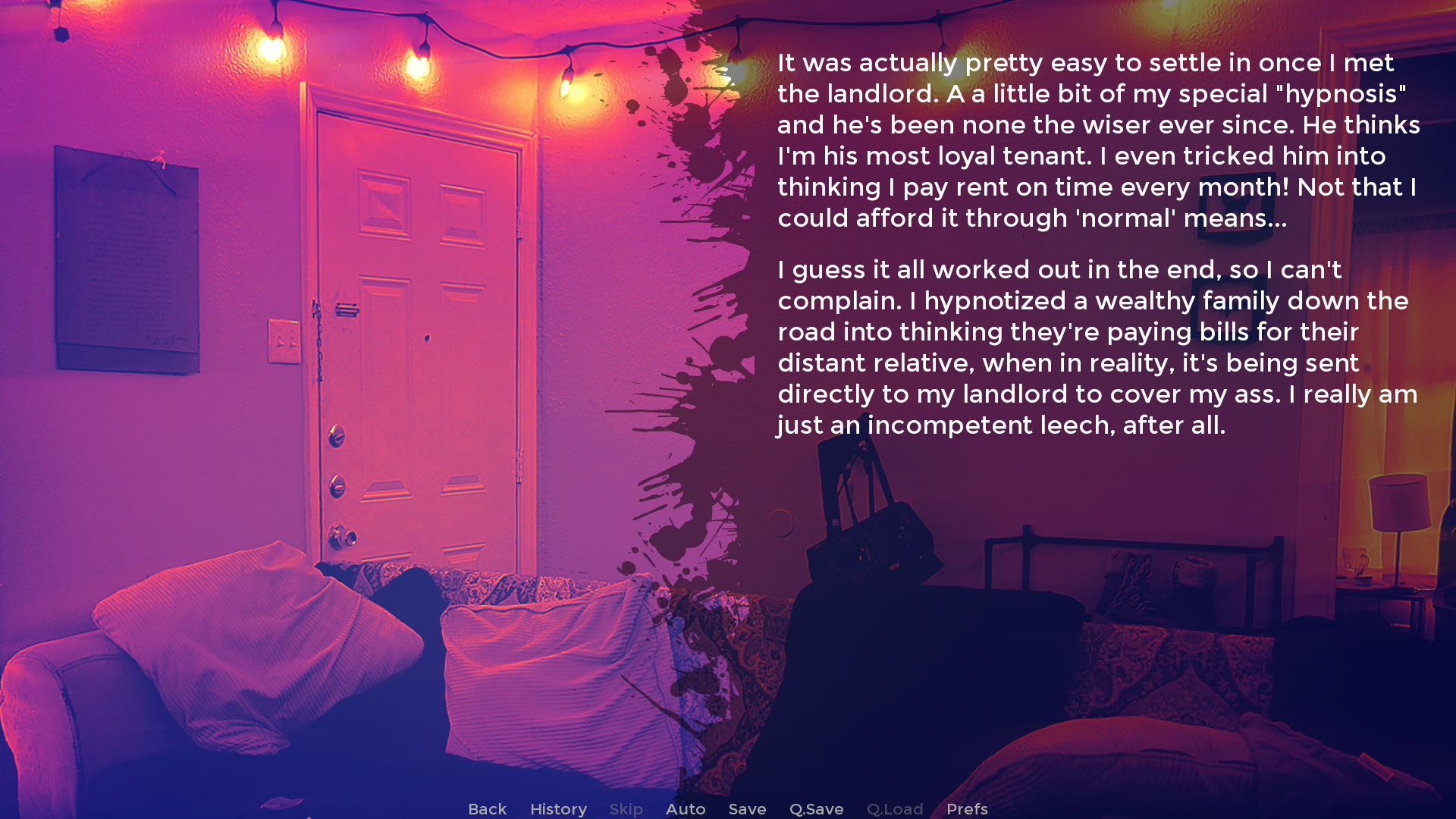 Rumors flutter around the neighborhood about the run down looking house on the corner of the street. Nobody can quite pin down what goes on there, whether it be criminal activity, or perhaps something more supernatural. That is, until a girl named Faith bumps into the resident of the home: The neighborhood's local vampire, Vi.