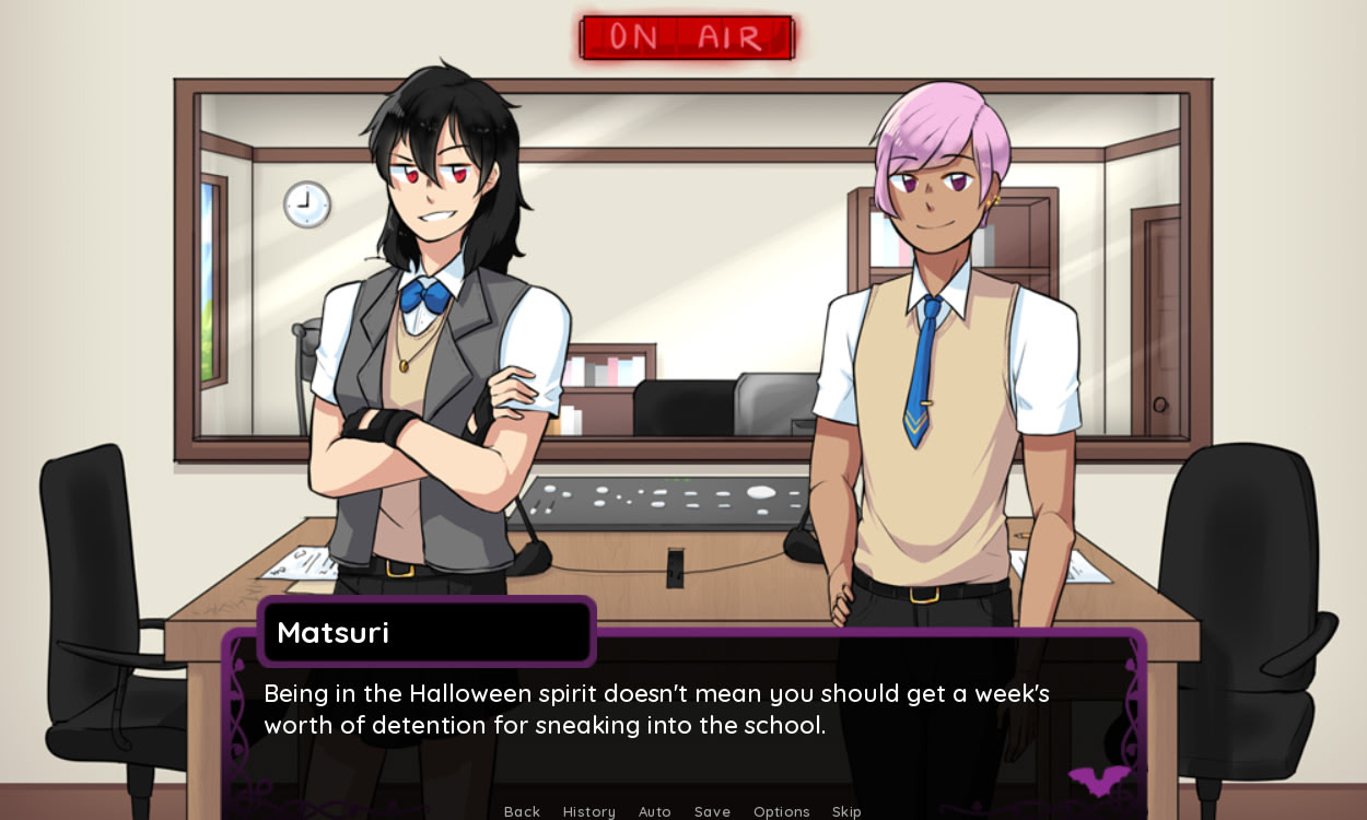 Pride Park is preparing for it's annual Halloween Live, where after the regular Battle Live two units face off to end the night of horrors. Amidst the planning and organizing, the two units chosen to be the stars reminisce about the year prior... itch.io]