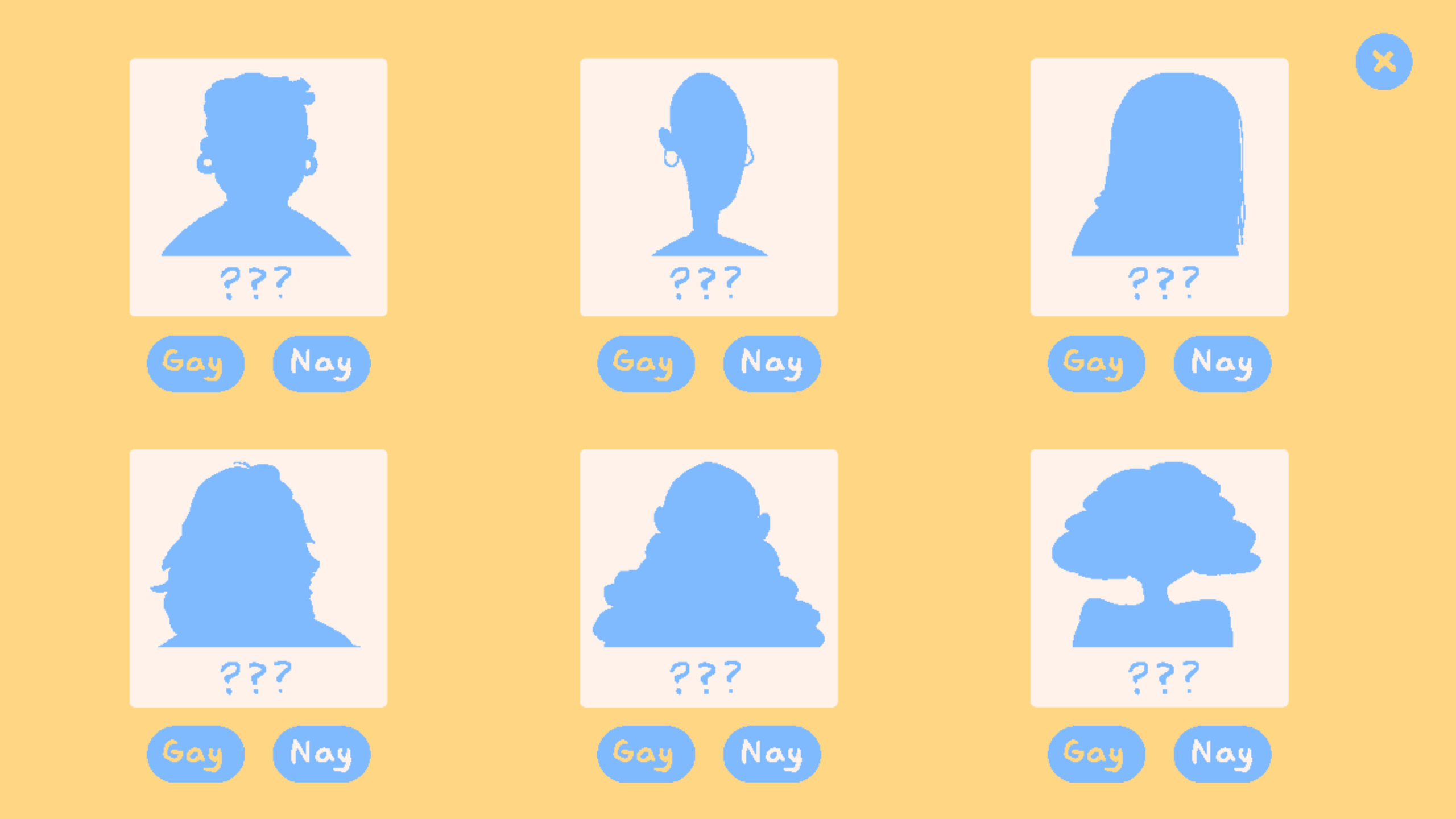 You play as a detective who gets hired by a rich lady to find out which of her party guests are gay. Please do not take this game too seriously.