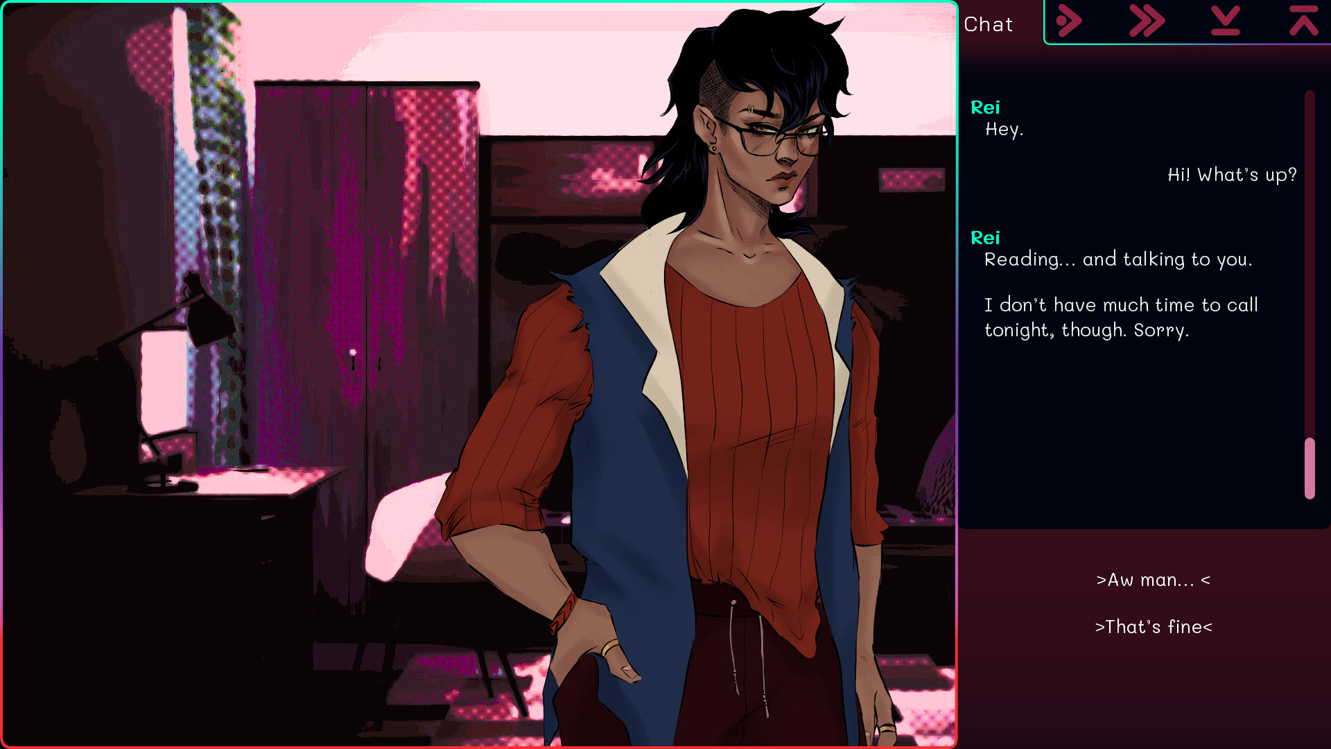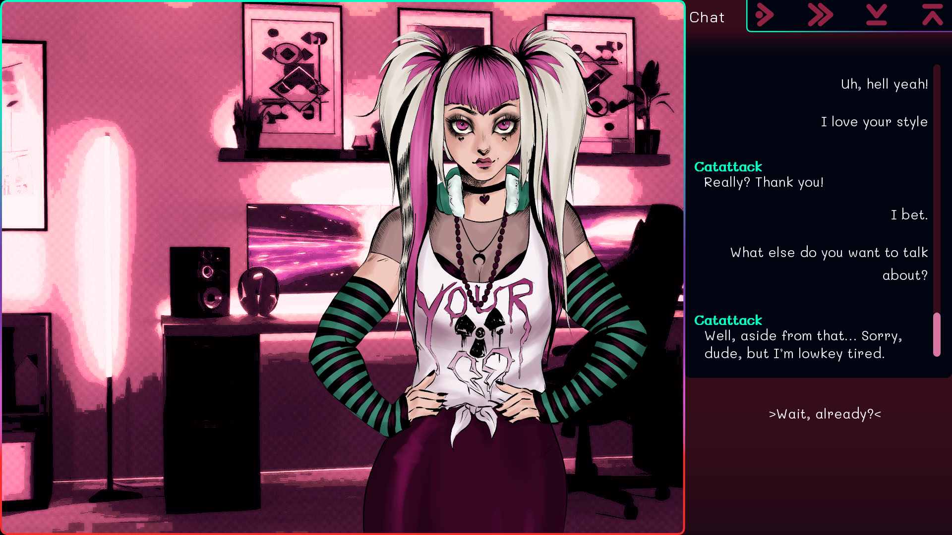 Your friend Dove invites you to a group chat to make some new friends. Everyone is so different but so friendly! They all seem so interested in you—too interested. Have fun navigating online relationships!