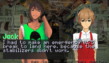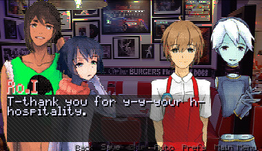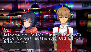 "Welcome to JoJo's Diner! How may we help you?" Year 21XX, somewhere deep in space, at JoJo's Diner. You (protagonist nameable) are working your usual shift alongside a bot named Vev, just waiting for the rush hour, when two individuals with a broken ship engine stumble in. Do you want to stay wher...