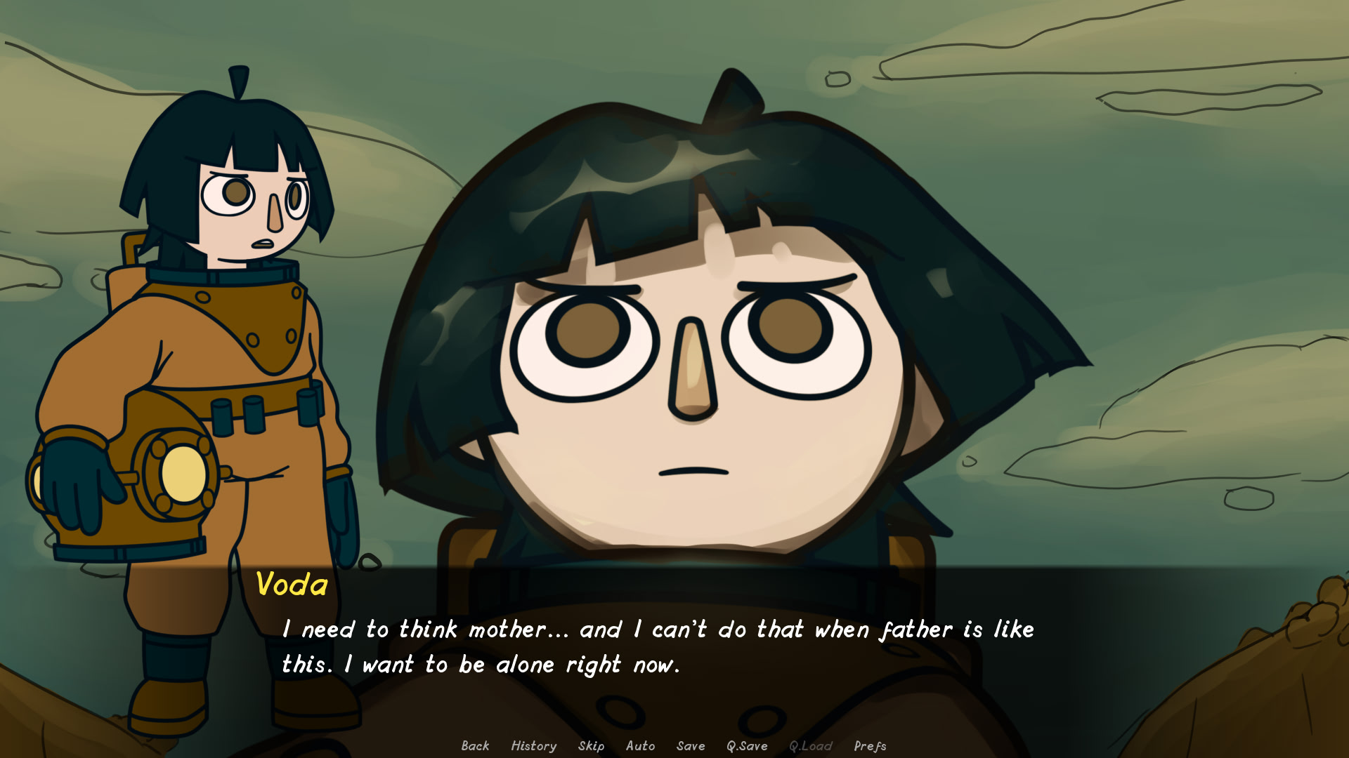 A woman takes a dive and attempts to control the situation she's found herself in. The only certainties of the cold depths inside a diving bell... are love and hunger. Itch.io]
