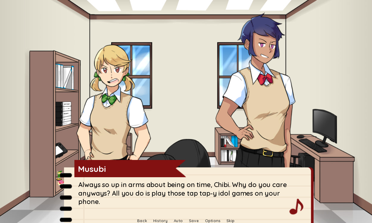 The two halves of the school (girl's and boy's) battle each other in live performances known as Battle Lives for recognition and marks. Split into idol groups known as units, they perform their hearts out onstage.