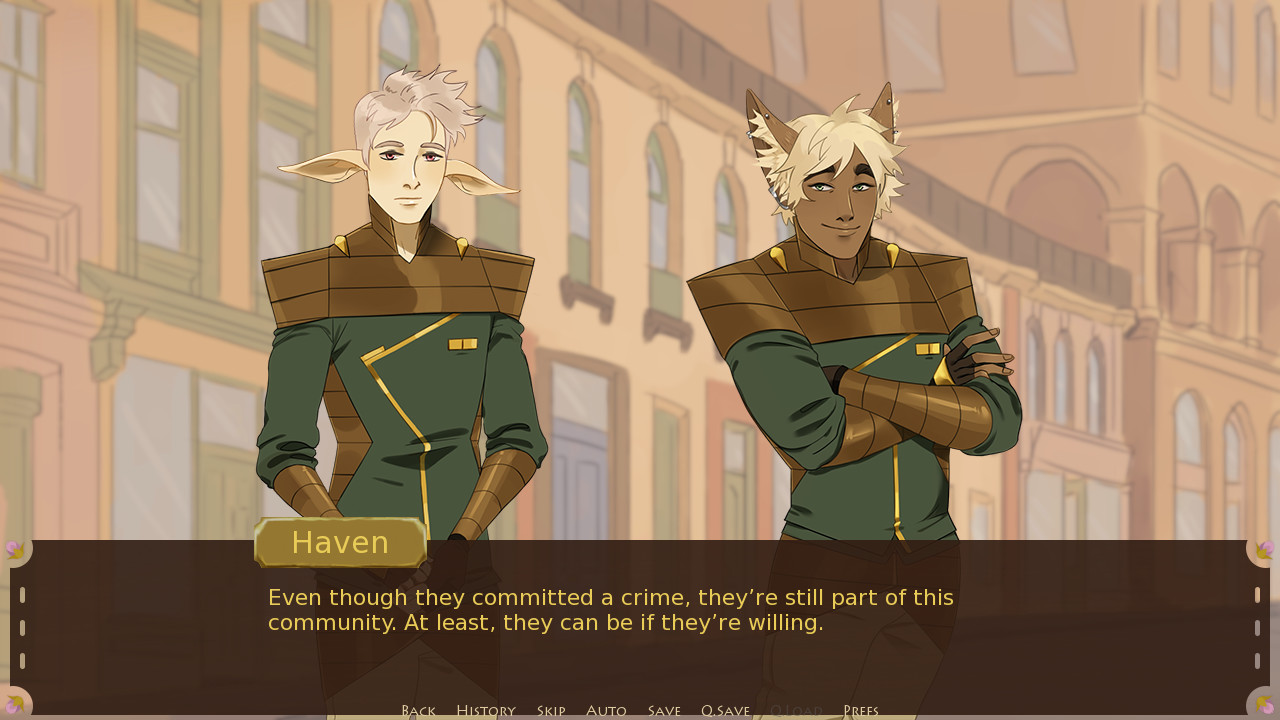 Following a corruption scandal, Koroviȼ is being transferred to the Palace District. There, he accompanies three guards on their patrols and over the course of a few days, becomes closer with them. The game features 3 guards you can get to know over the course of 3 days, and just shy of 10,000 word...