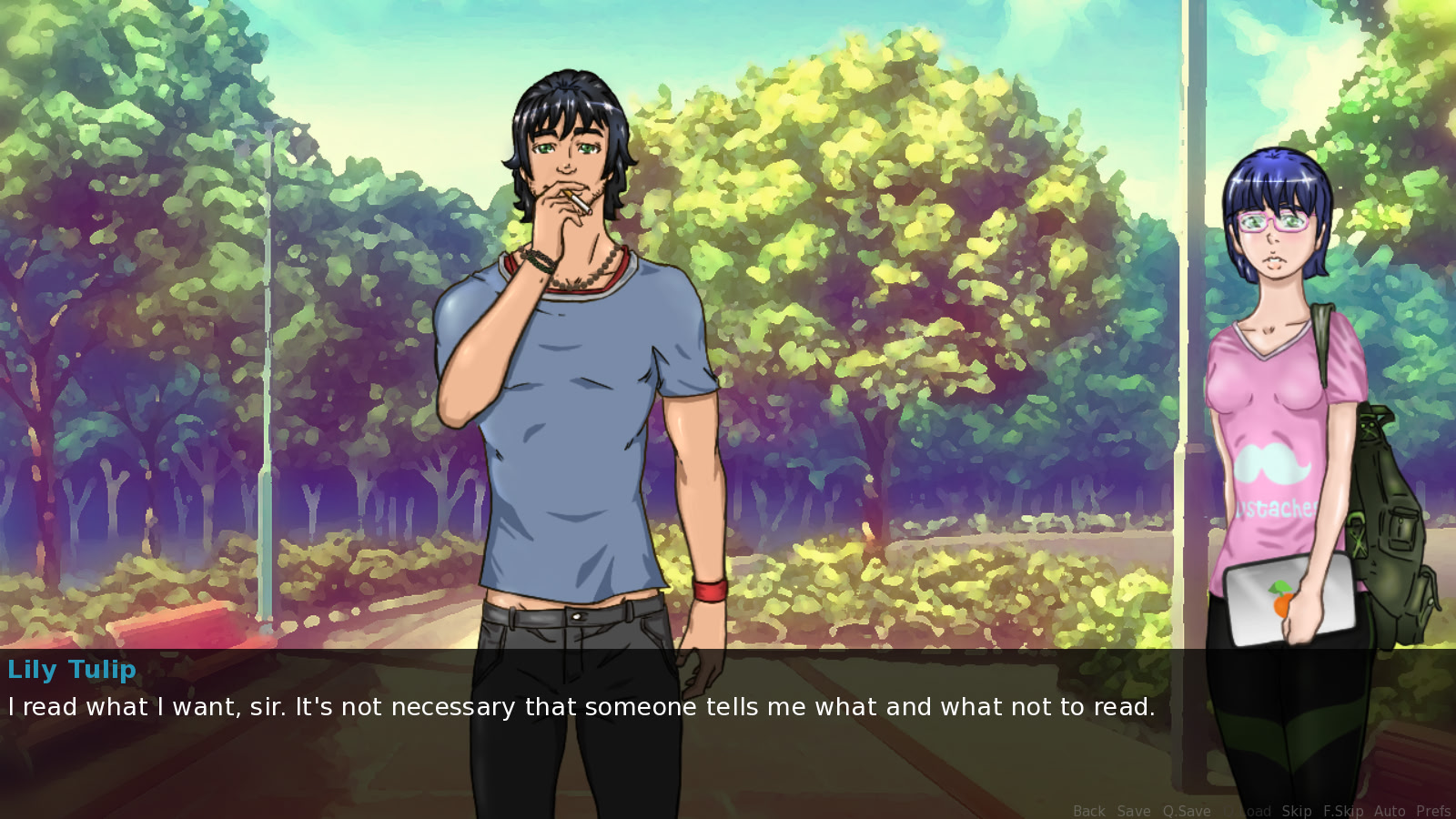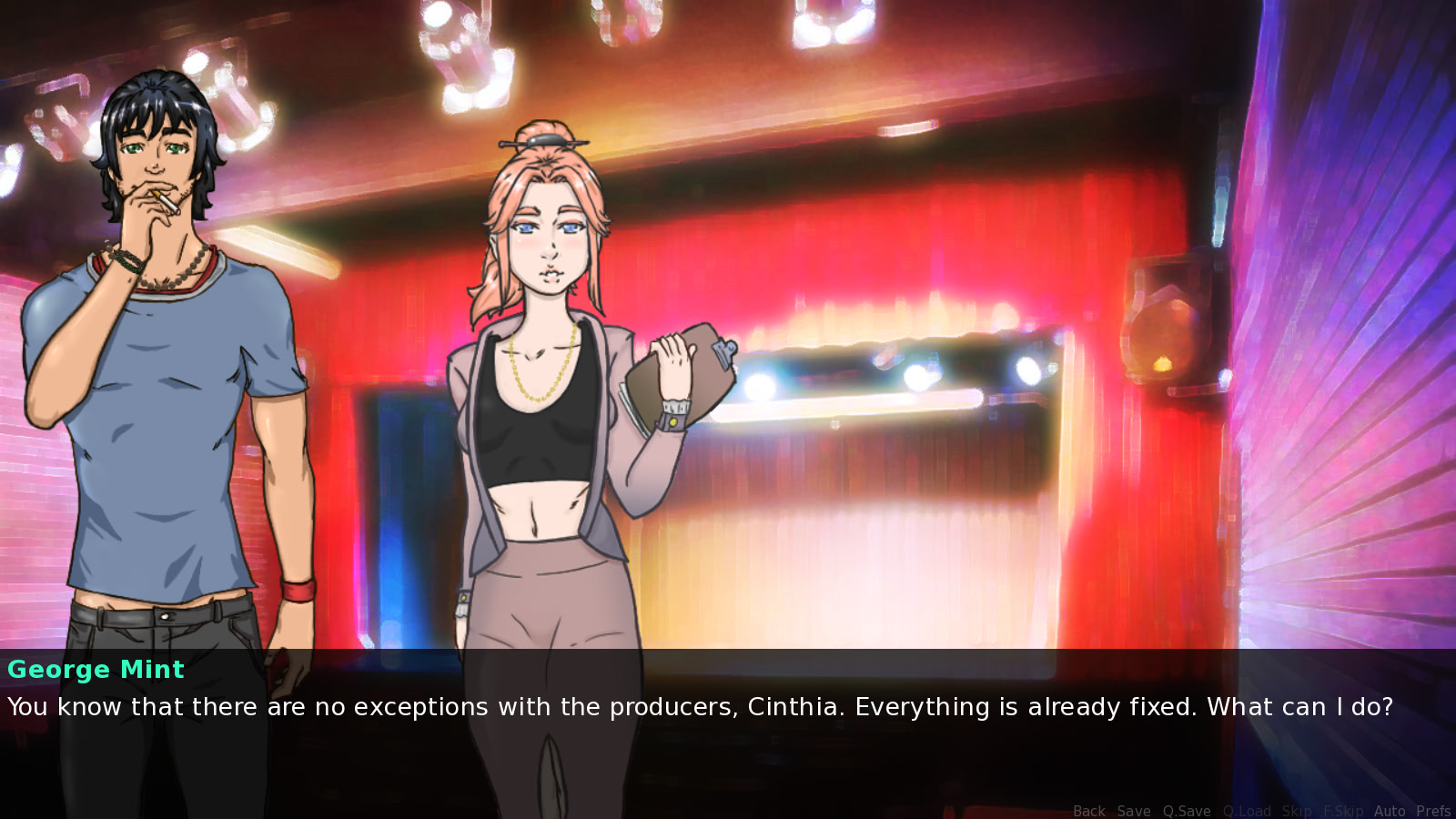 The game tells the story of George Mint, a young Theater Director working in a new play and his day-by-day interactions with a colorful group of persons that will share their stories with him... and also the big secret they all share that George is about to find out.~ itch.io]