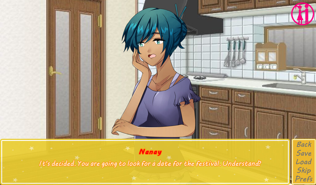 You play as a teenage girl who is returning to her hometown for a summer vacation after 9 long years. She rekindled old friendships and makes new ones. Her grandmother tells her that she has to find a date for the upcoming town festival or else she will be paired with a guy she doesn't know! Will you manage to find the right guy or will you be forced to partner up with a stranger?