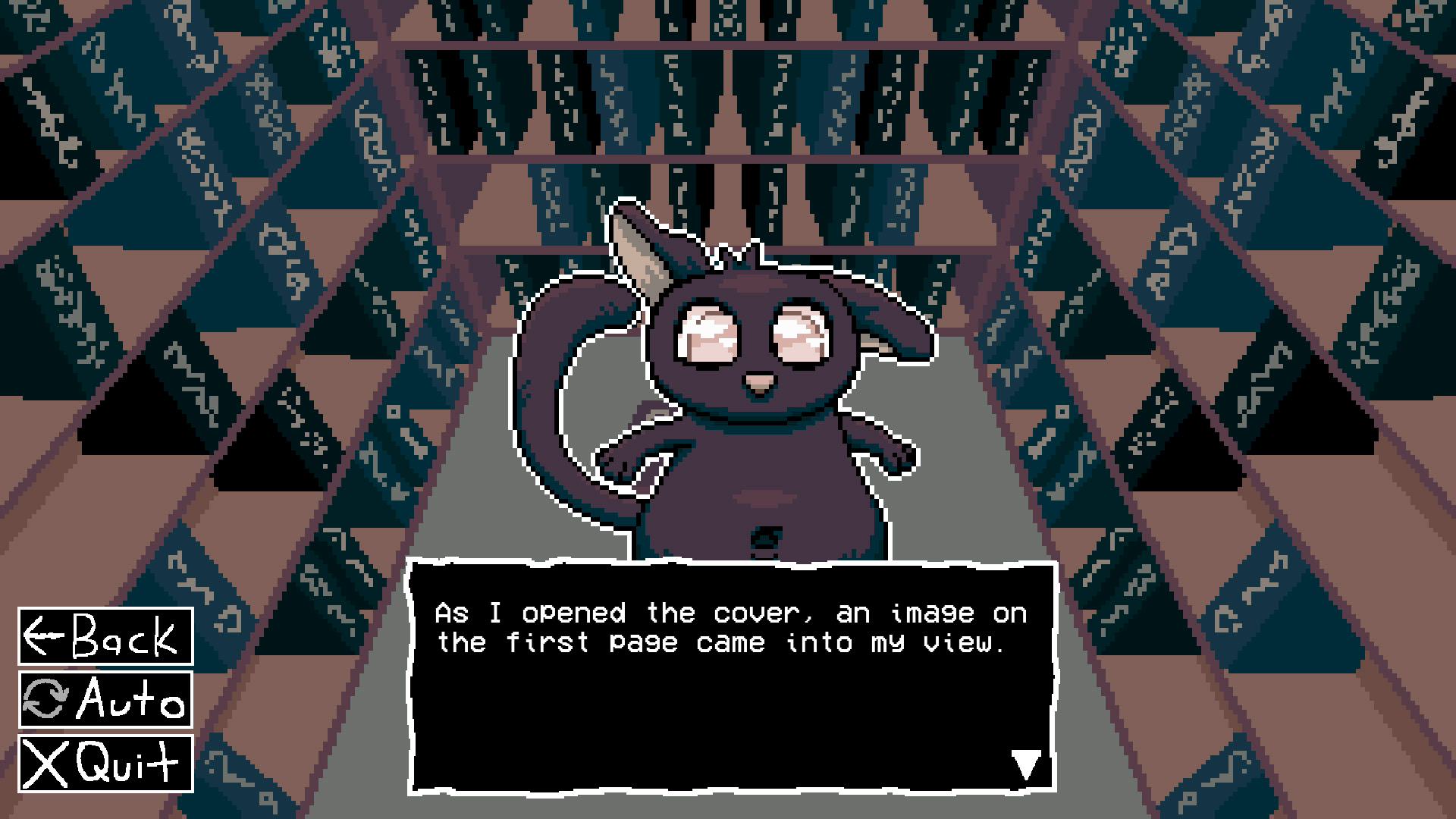 You spot a book lying on the ground during a trip to your favorite library, but when you approach it – you're transported into a nightmare! Trapped in a room with a transforming feline monster, how are you meant to escape!?