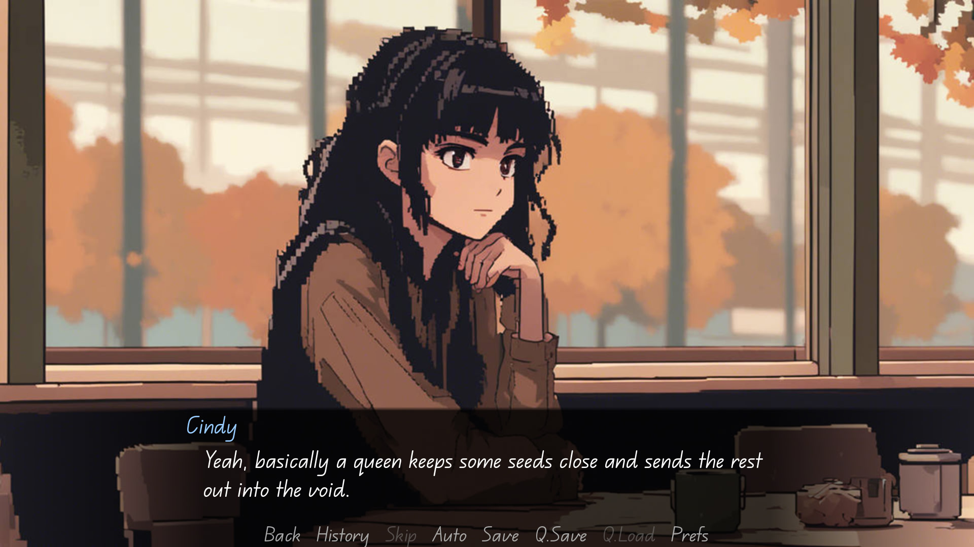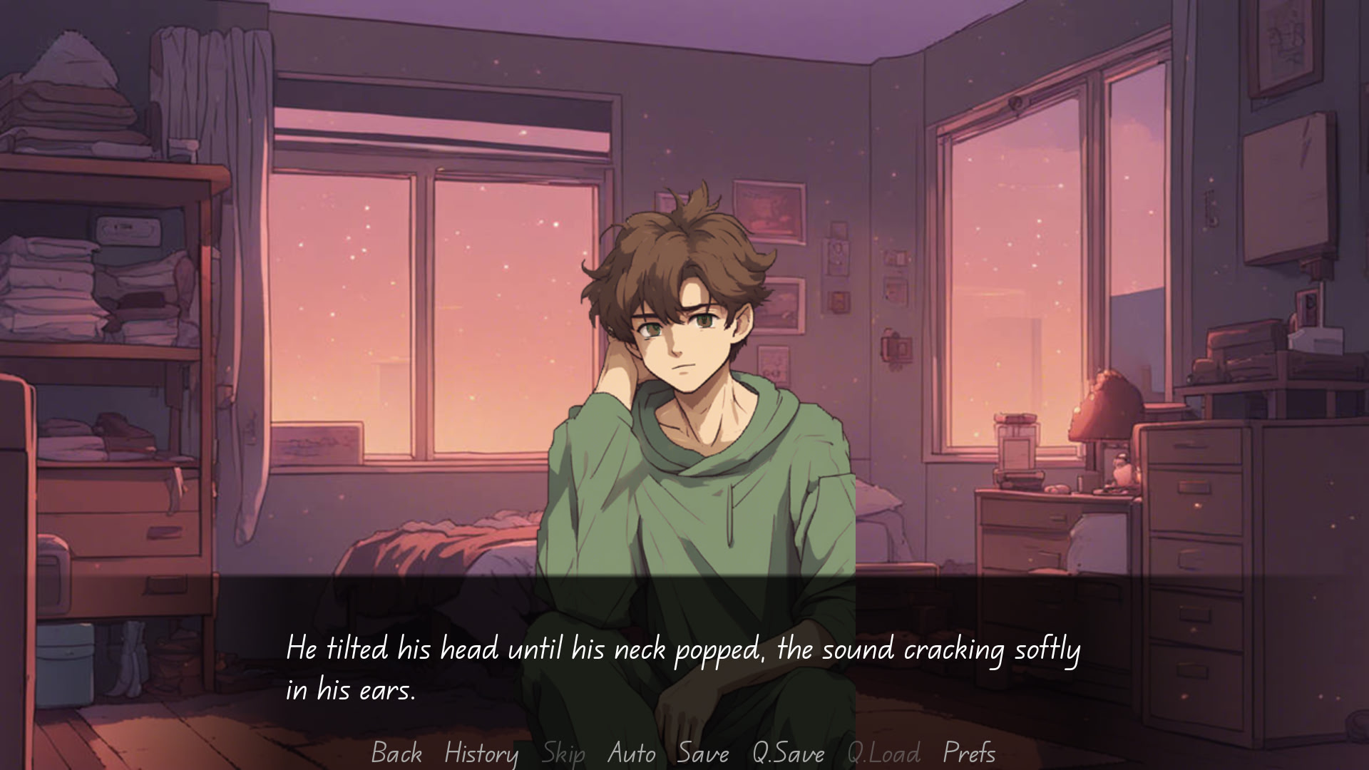 This is a story about learning to love through letters, through dreams, and through the flicker of impossible messages. A slow-burn sci-fi romance told through text boxes, phantom voices, and soft, surreal visuals.