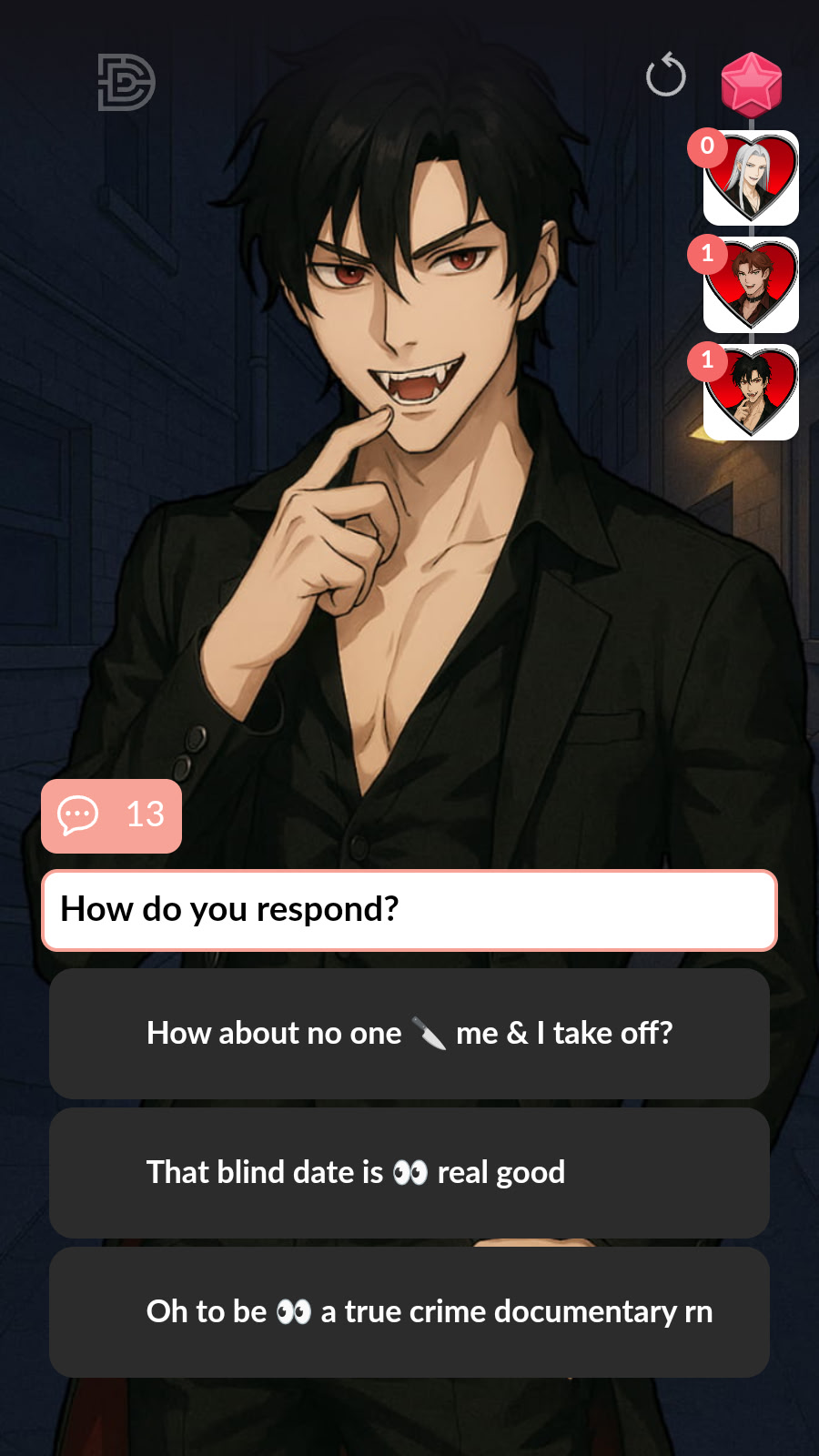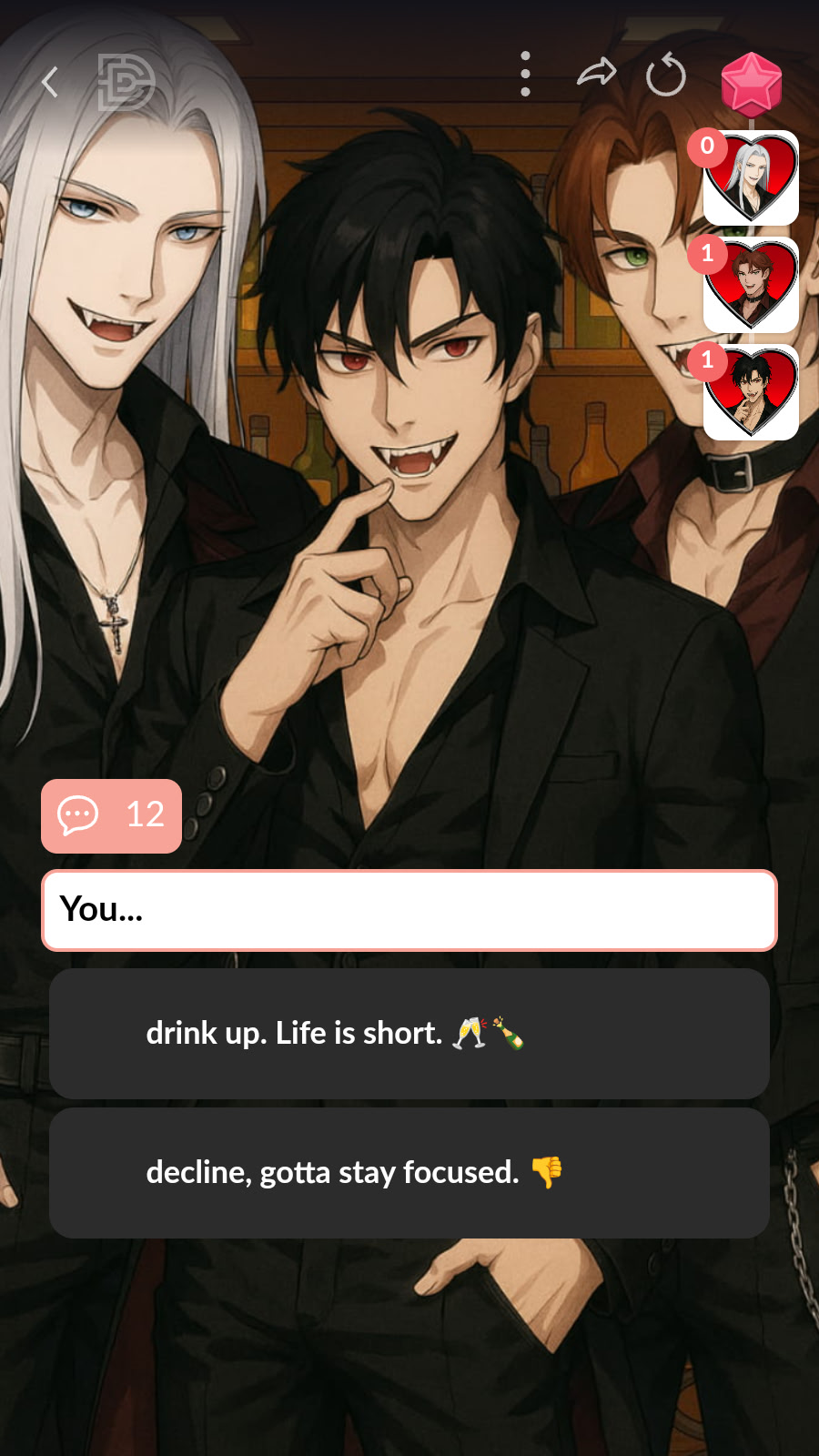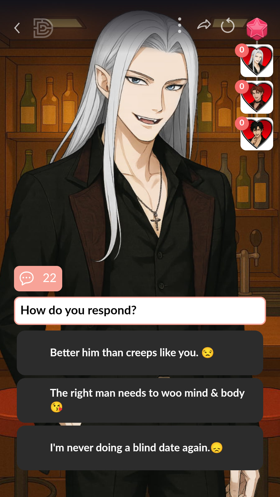 You're on a blind date when three hot vampire assassins try to kill you. How did you end up on their hit lists? And can you seduce them long enough to stay alive? Dorian app]