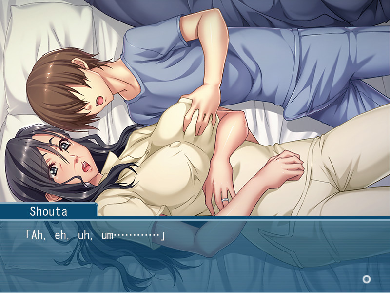 Sobo to Boku ~Obaa-chan, Nanika Dechau yoo~ is a nukige visual novel centered around wife and grandmother Minako and her affair with her grandson, Shouta. It started when Minako was woken up by the feeling of her breasts being squeezed. She opened her eyes only to see Shouta, who had been sleeping next to her. When Minako asks him if there was something wrong, Shouta explains that he needed to touch someone’s boobs now. Initially thinking that her grandson is just being childish, she tries to push him away, but she can’t. Instead, she notices Shouta’s erection. Does Minako’s grandson see her more as a woman and less as his grandmother?