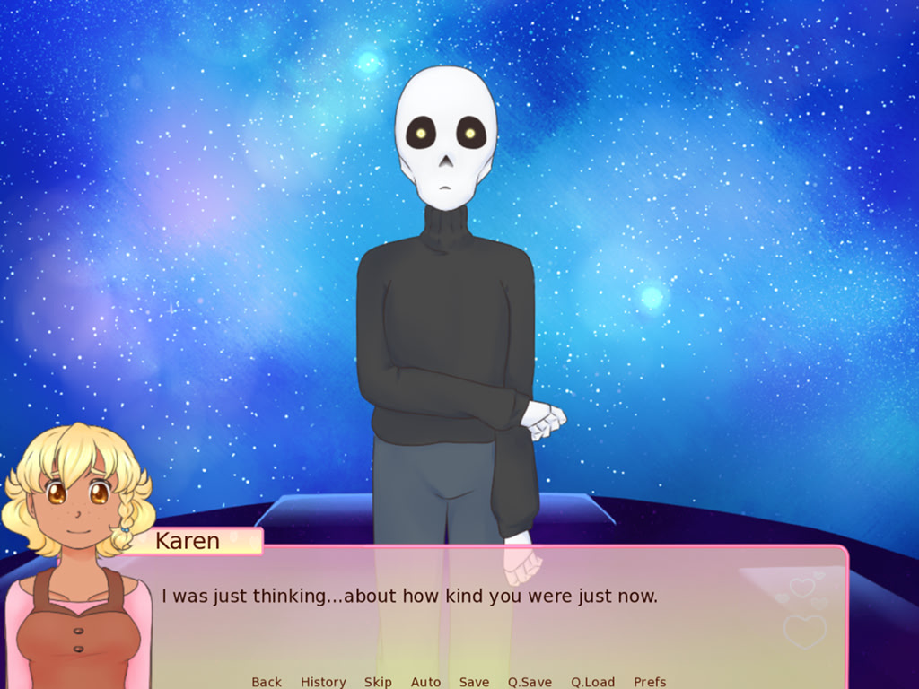 Karen, a recent high-school graduate, moves in with a family friend over summer...and find that she's moved into a neighborhood with some pretty cute monster-people. There's Noel, the tentacle-slime who works at the bed and breakfast you're staying in; William, the fun guy with animal features; Ellie, the cyclops barista who gives cute people freebies; and Trevor, a shy, anxious skeleton who loves the stars.