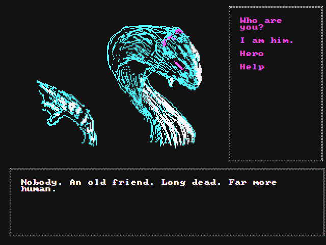 A flash fiction interactive: conversations with the reaper in beautiful CGA. official website]