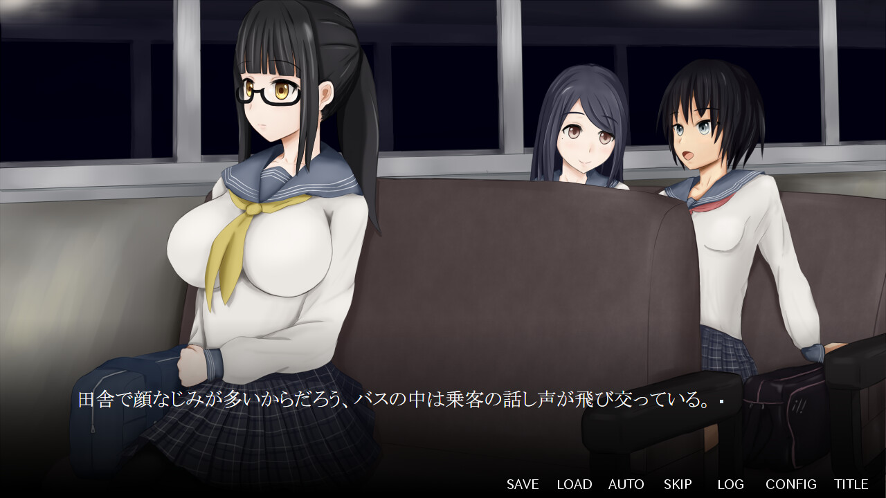 This is a simulation game where the player can engage in molestation towards a quiet, well-developed girl they meet at a deserted bus stop in a rural town during the night. The game allows the player to touch various parts of the girl's body, and even remove her clothes while being careful not to be caught by other passengers or the girl's friends on the bus. As time passes and the number of passengers decrease, the player can take more daring actions until reaching the final stop.