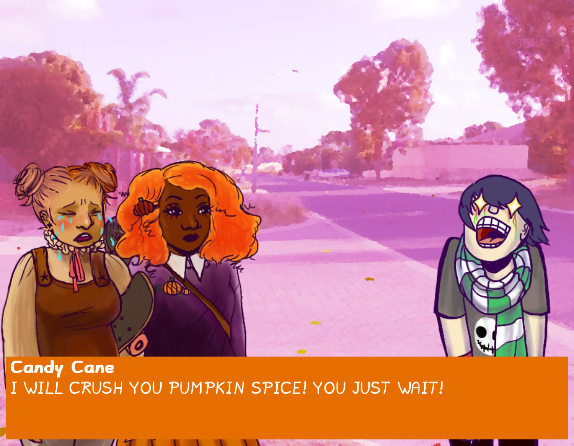 Play as Pumpkin, a magical witch warrior and girl skateboarder as she prepares to defeat the evil Candy Cane with the help of her girlfriend Spice. Itch.io]