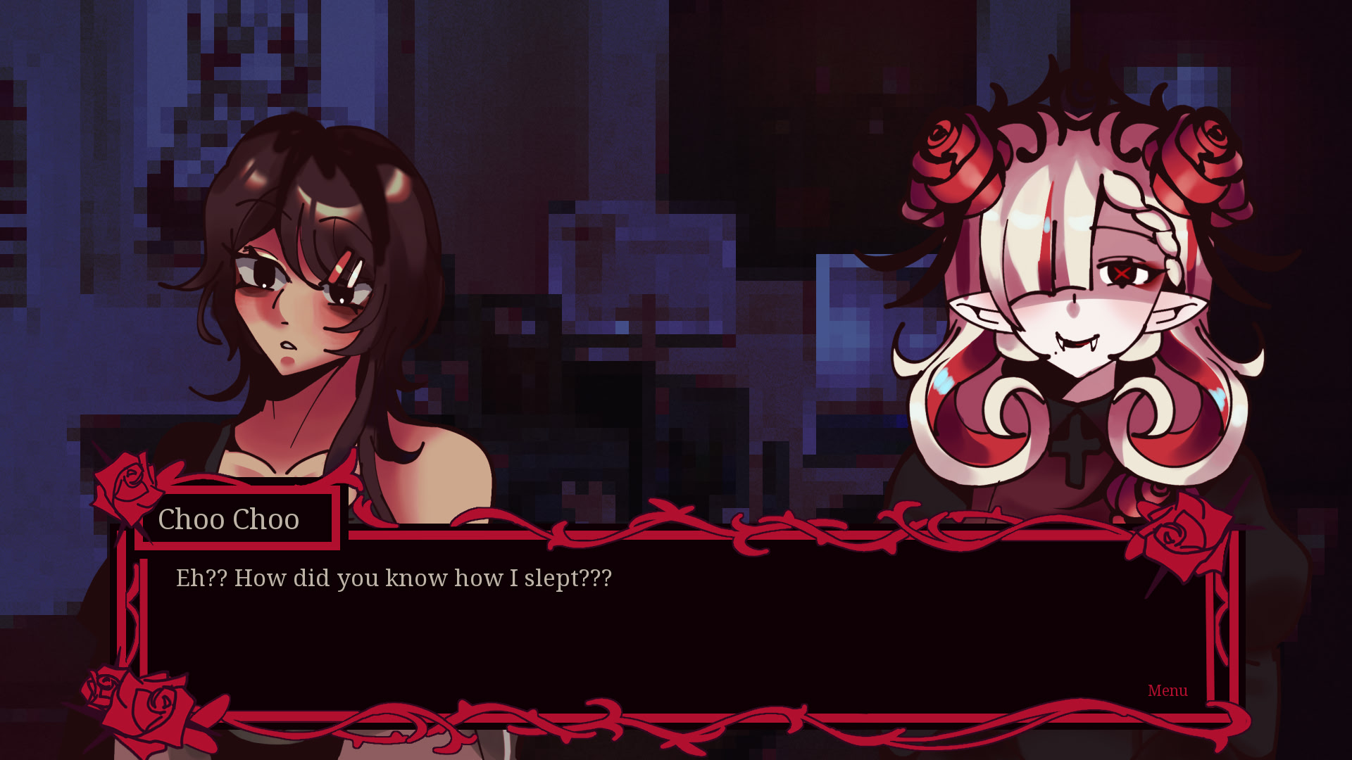 Girl loser Choo Choo downloads an unsuspecting romance game; now she must chose between her real life relationships or the allure of a hot digital vampire. Although... it seems that there is a little more to the game than Choo Choo thought. itch.io]
