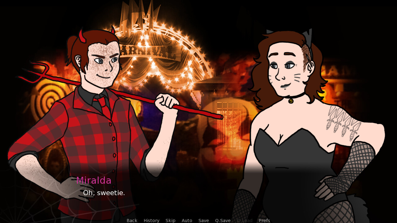 A heartfelt visual novel about a messy bitch who lives for drama harassing her friends into dating each other. Contains an abundance of WLW, young love, old flames, several gremlins (do not feed after midnight), tiny pumpkins, hot moms, and at least one (1) werewolf.