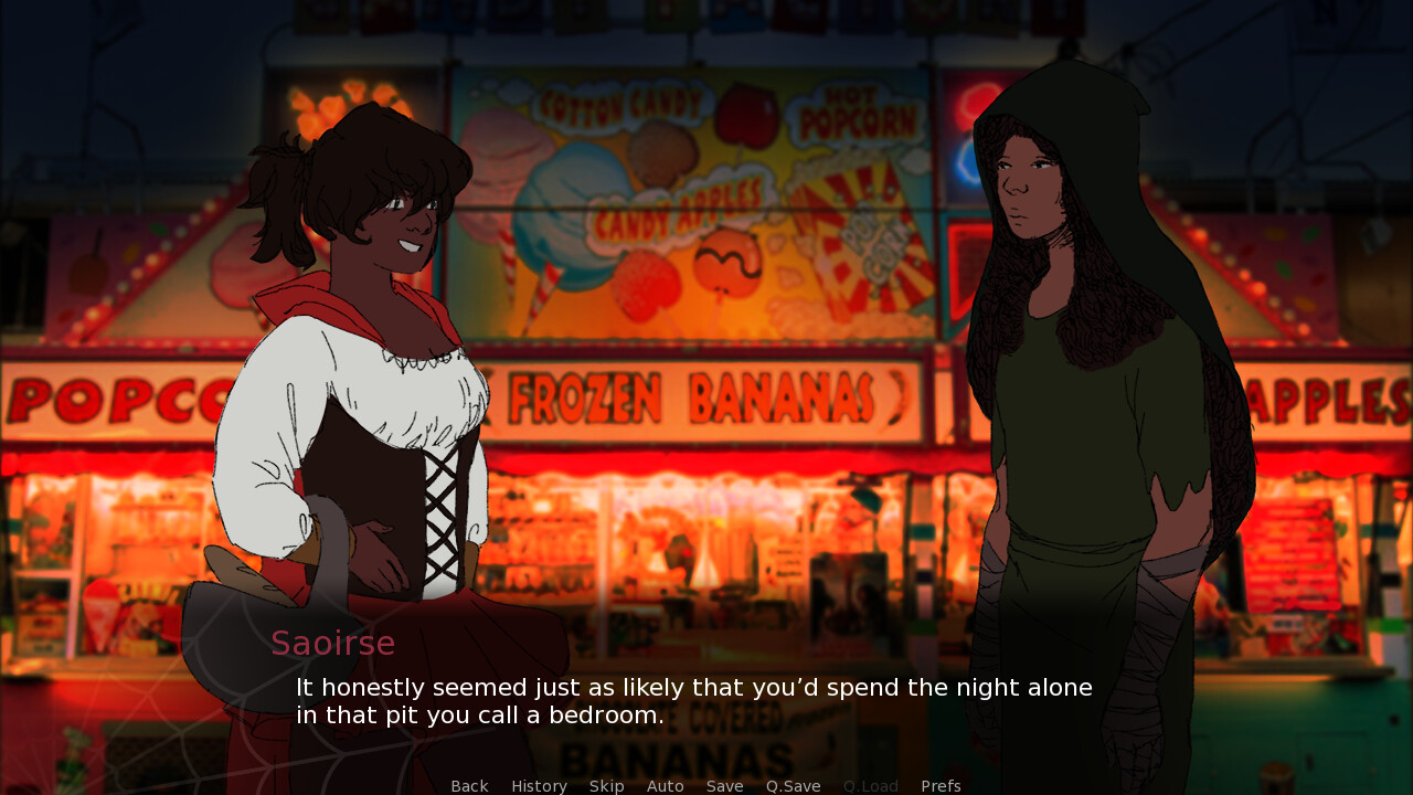 A heartfelt visual novel about a messy bitch who lives for drama harassing her friends into dating each other. Contains an abundance of WLW, young love, old flames, several gremlins (do not feed after midnight), tiny pumpkins, hot moms, and at least one (1) werewolf. itch.io]