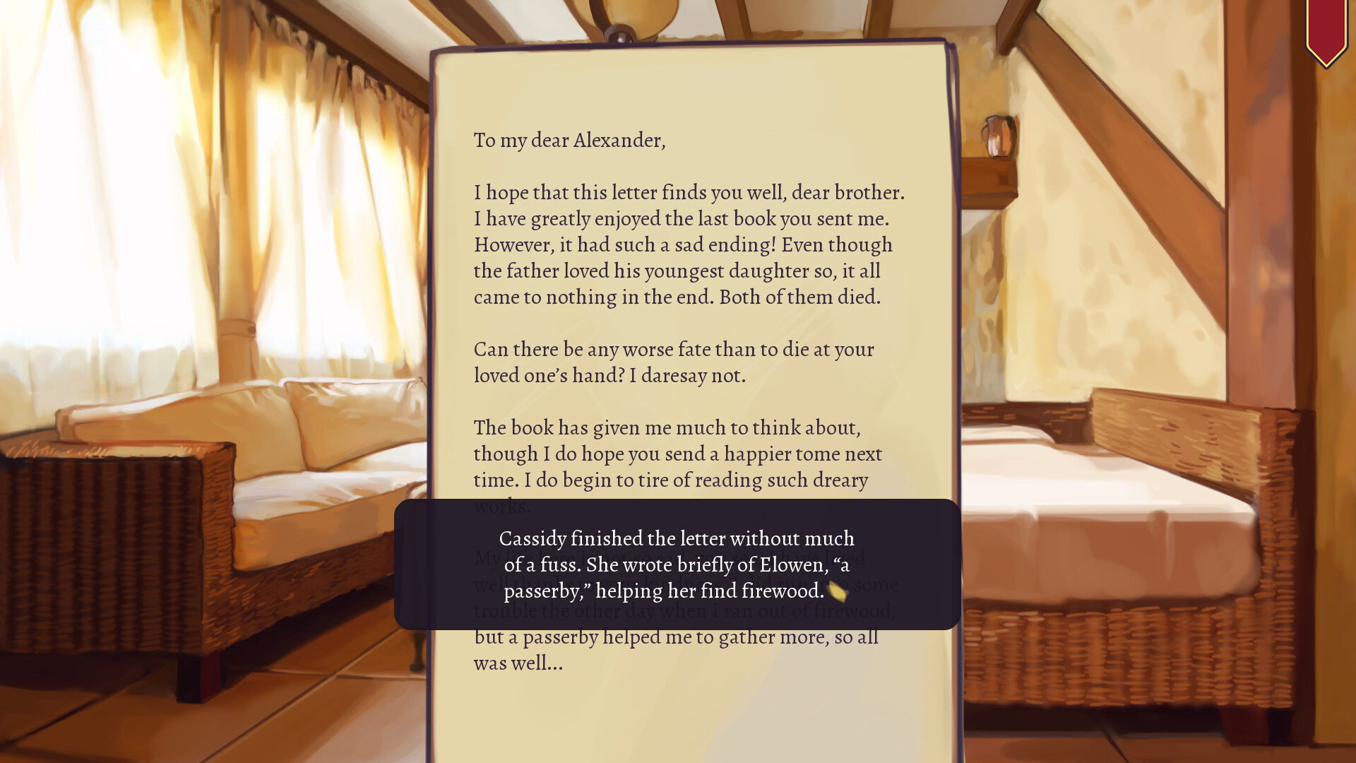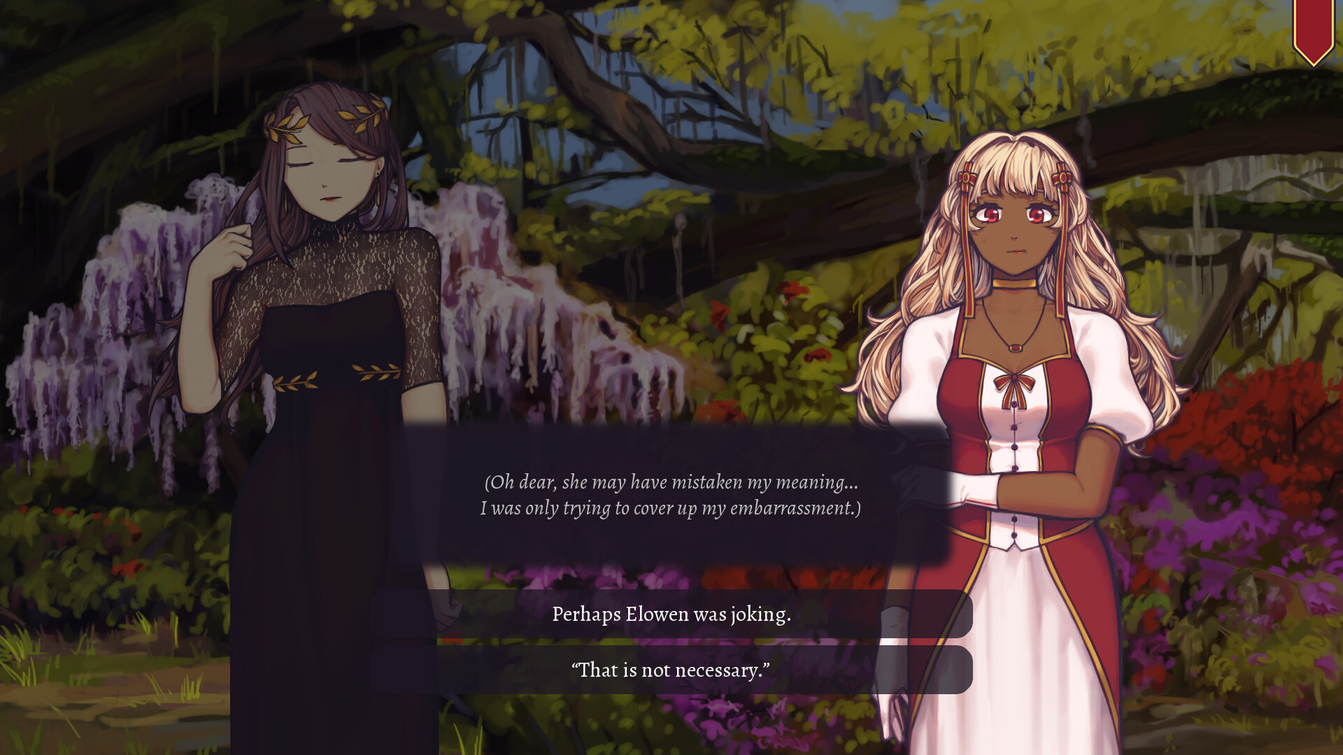 In the depths of a dark and unforgiving forest, an exiled princess whiles her time in solitude. For a girl raised in the lap of comfort, the woods are impossibly harsh, and day-to-day survival is the most she can manage. One day, however, a mysterious, beautiful maiden appears, throwing her world out of its already delicate alignment. The princess is instantly captivated by this stranger, and begins to fancy herself the heroine of a fairytale, even as the maiden proves herself to be less and less of a fantasy.