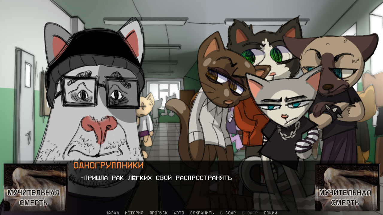 Toskunja is a student of Eblanov Vocational School, russiandoomer, poser and hikikomori. She has no goals, wastes her life, is addicted to smoking.