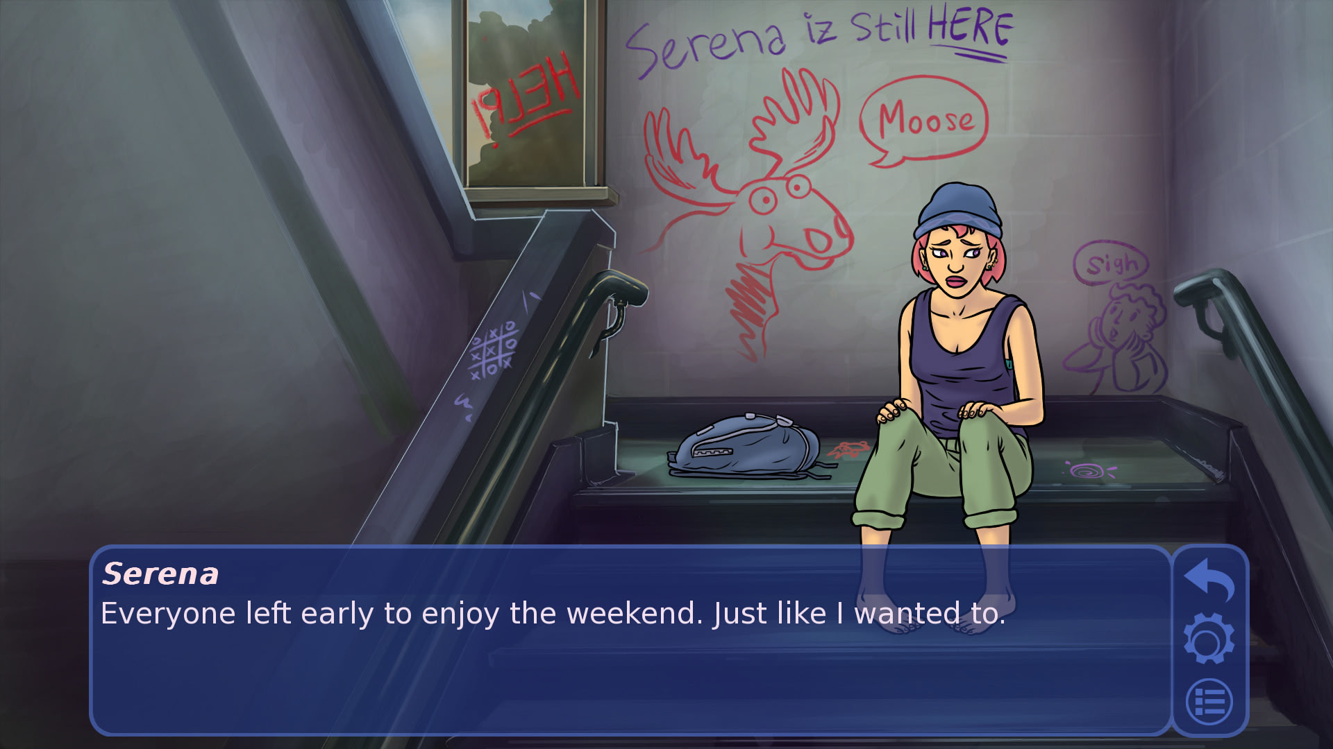 Serena locked herself in the stairwell with all her coworkers gone for the weekend. With no way of contacting the outside world and no hint of rescue in sight, Serena will discover that maybe, just maybe, her best friend is actually herself. And these sock puppets she just made...